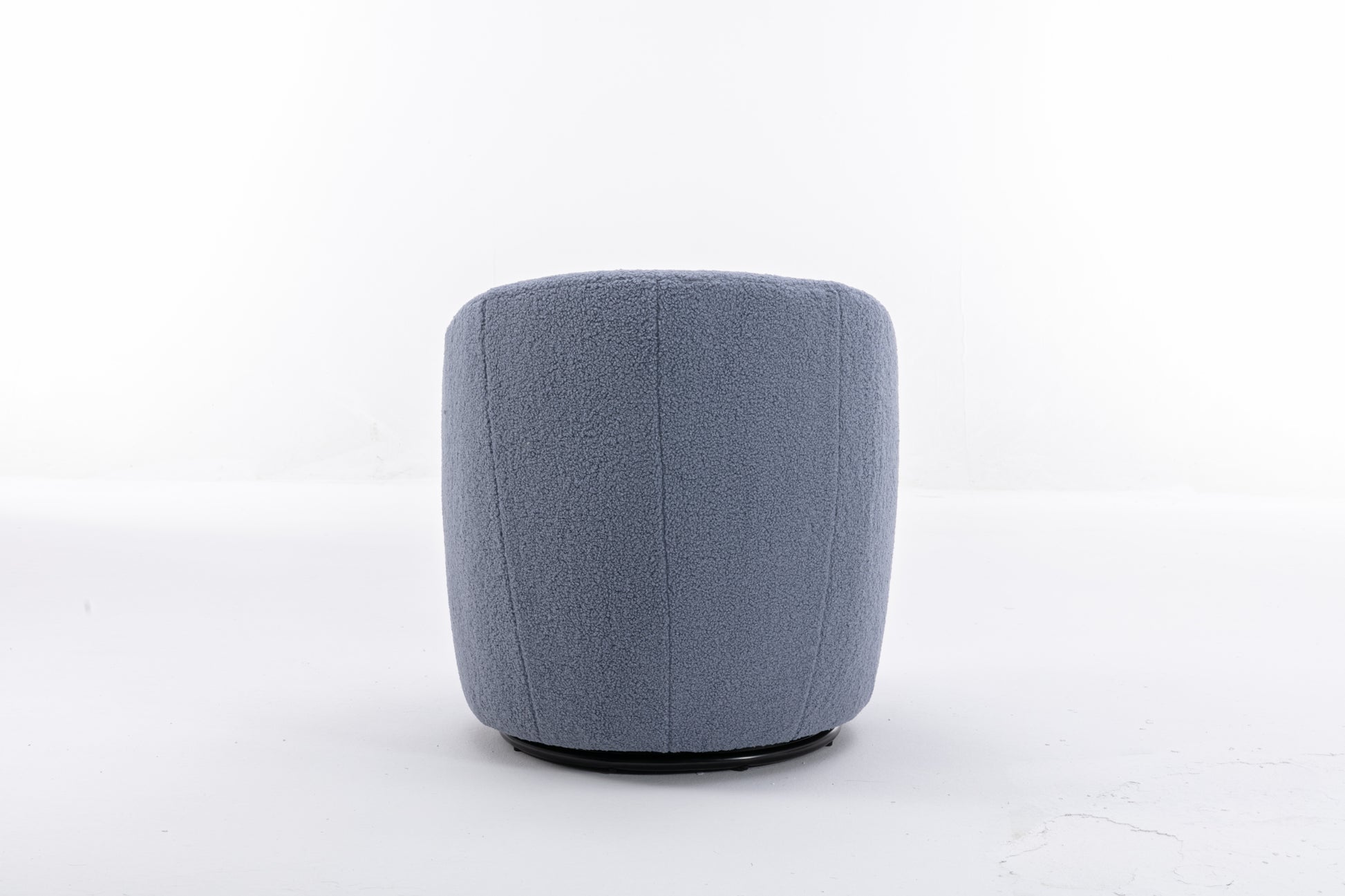 Sillón giratorio de tela Teddy con acento tipo barril y aro metálico con recubrimiento en polvo negro, azul claro