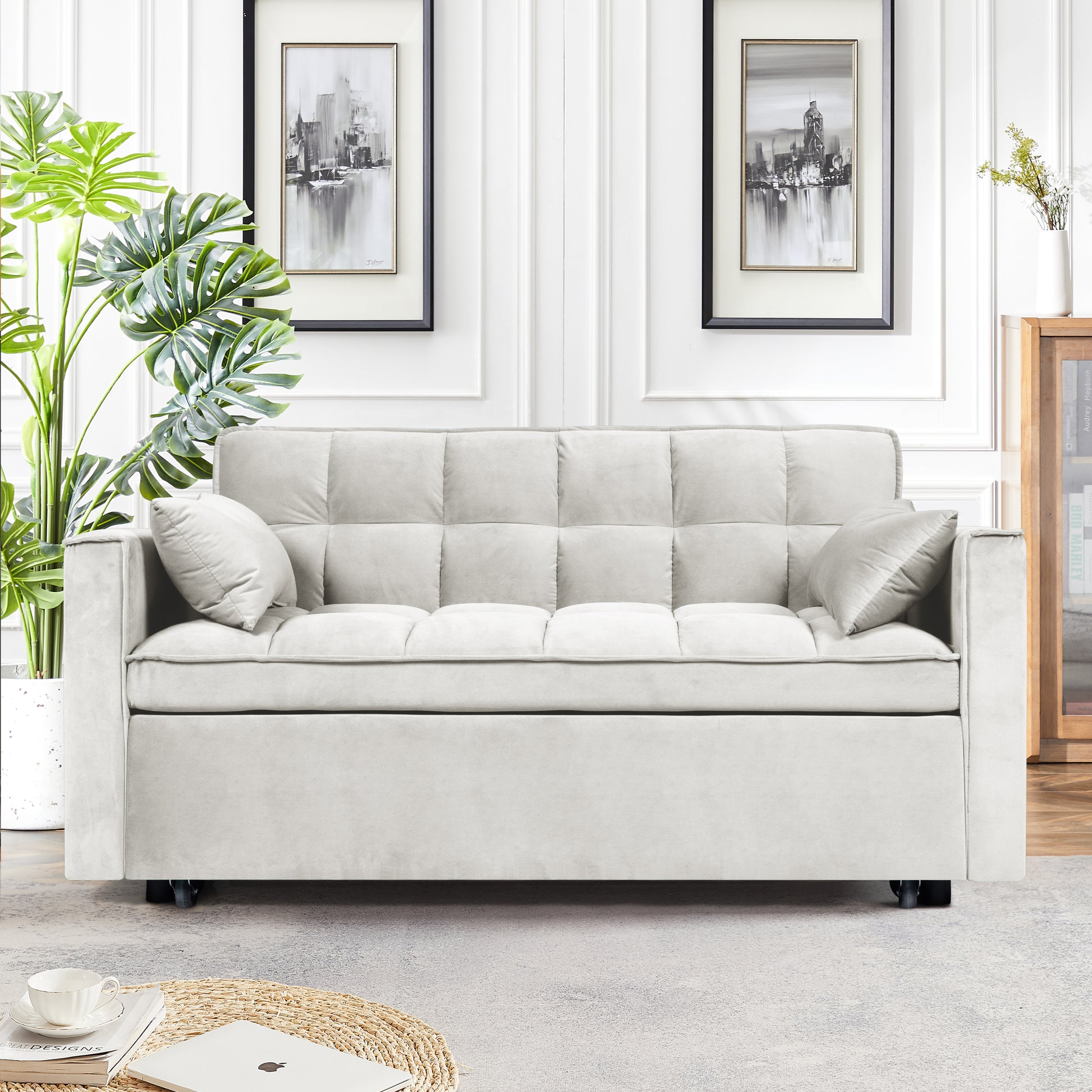 Modern Velvet Fabric 53' 3 in 1 Convertible Sleeper Sofa Bed, Futon Couches for Living Room with Side Pocket, Adjustable Backrest(Beige)