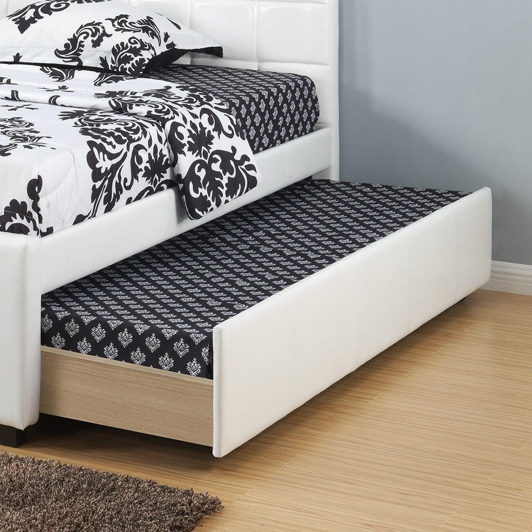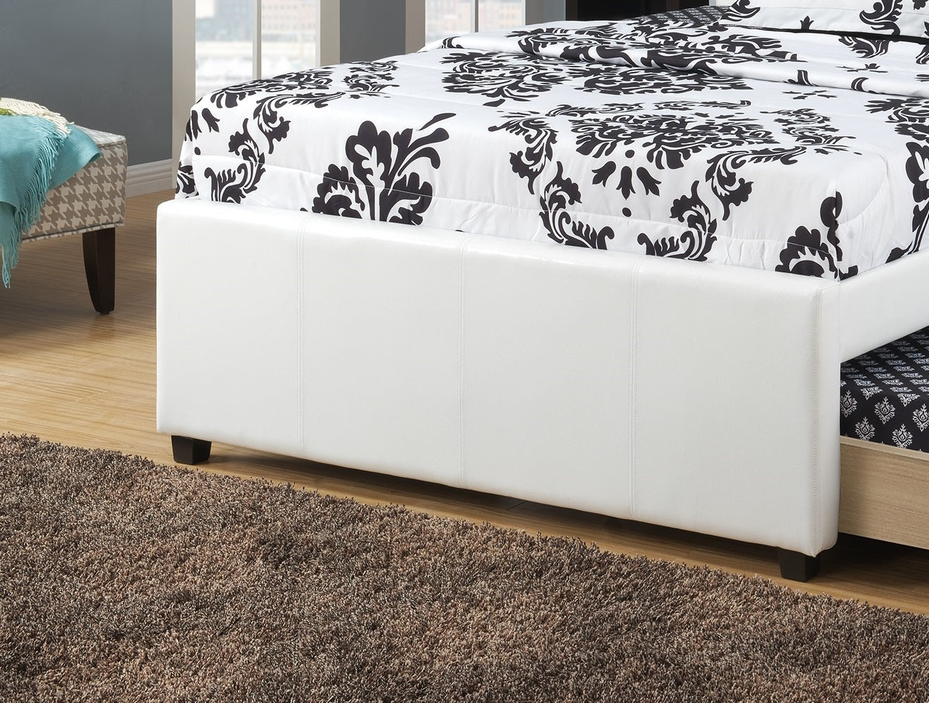 Twin Size Bed w/ Trundle Slats White Faux Leather Upholstered Plywood Kids Youth Bedroom Furniture Wooden Slats 1pc Bed