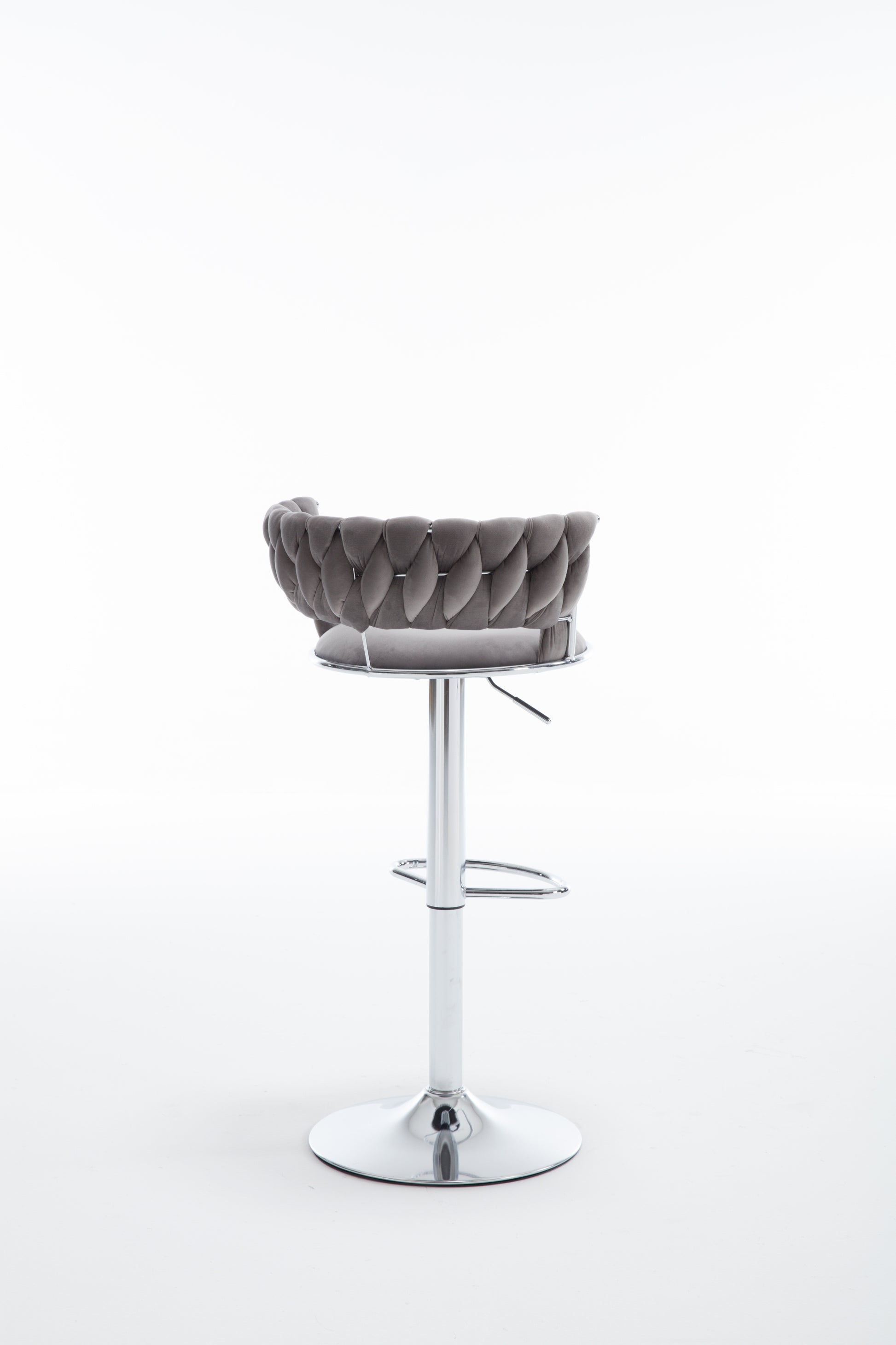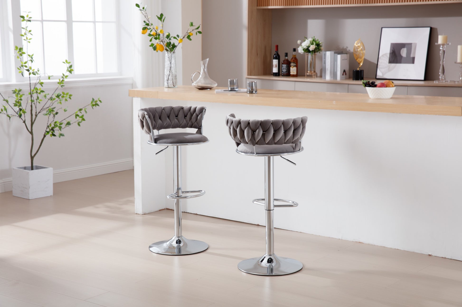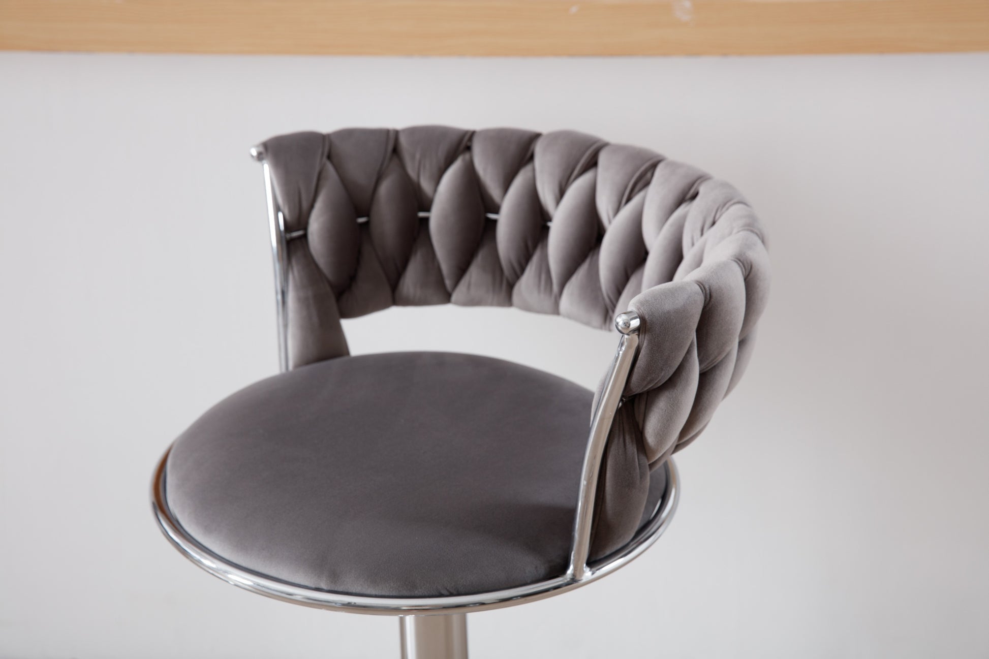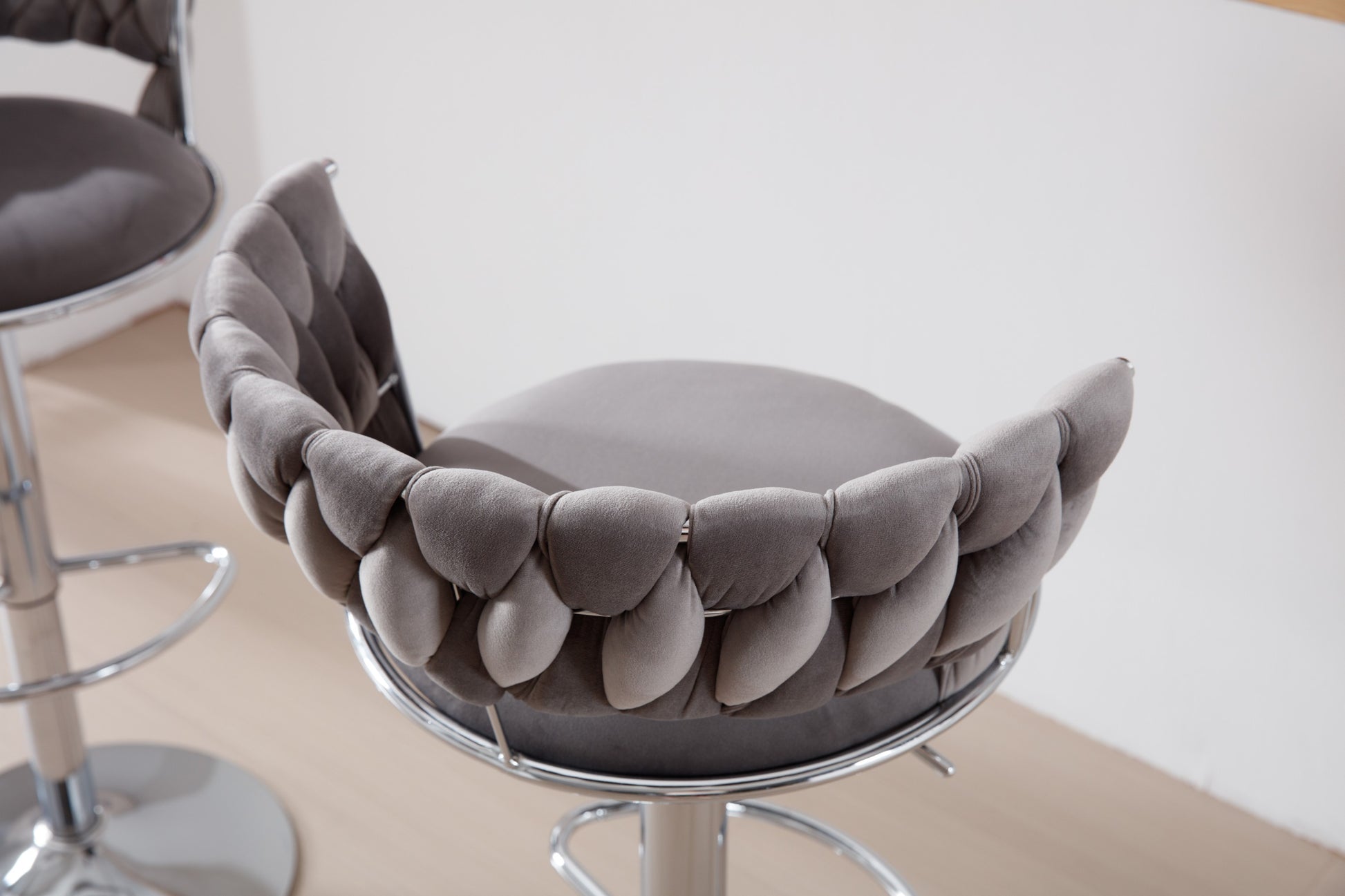 Set of 2 Bar Stools,with Chrome Footrest and Base Swivel Height Adjustable Mechanical Lifting Velvet + Bar Stool-GREY