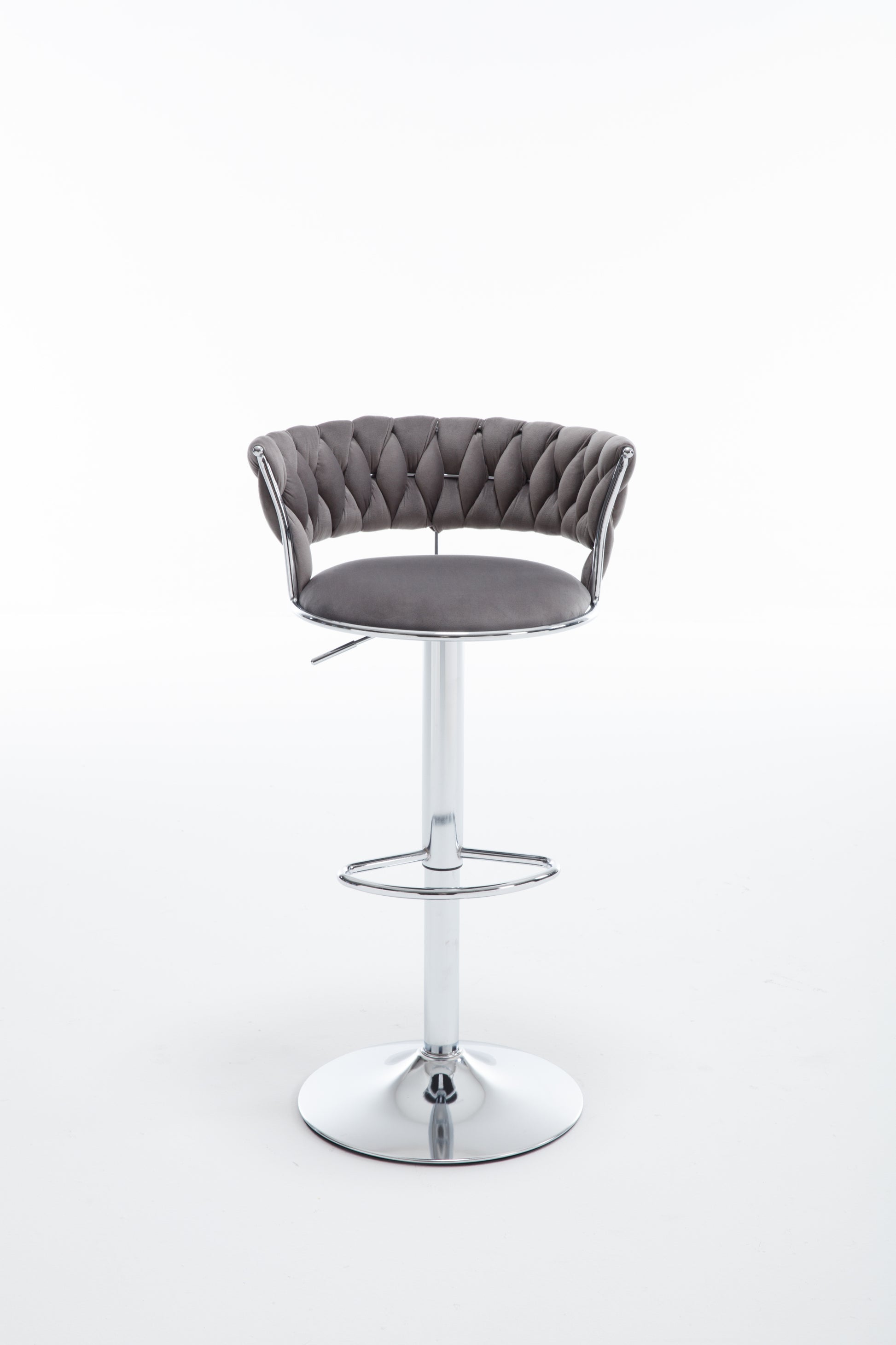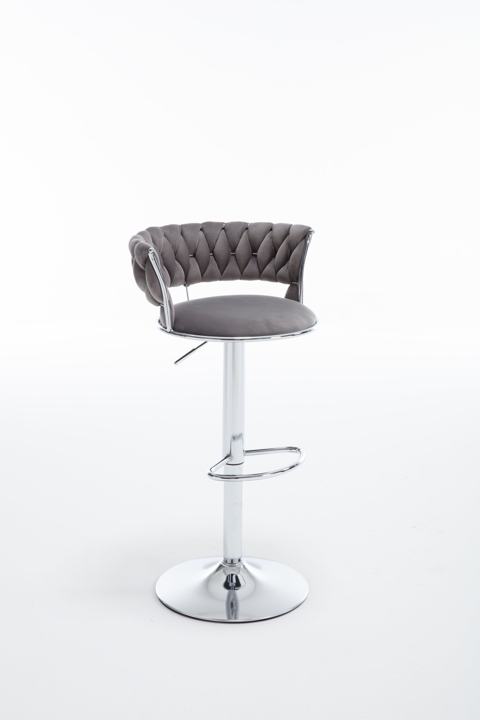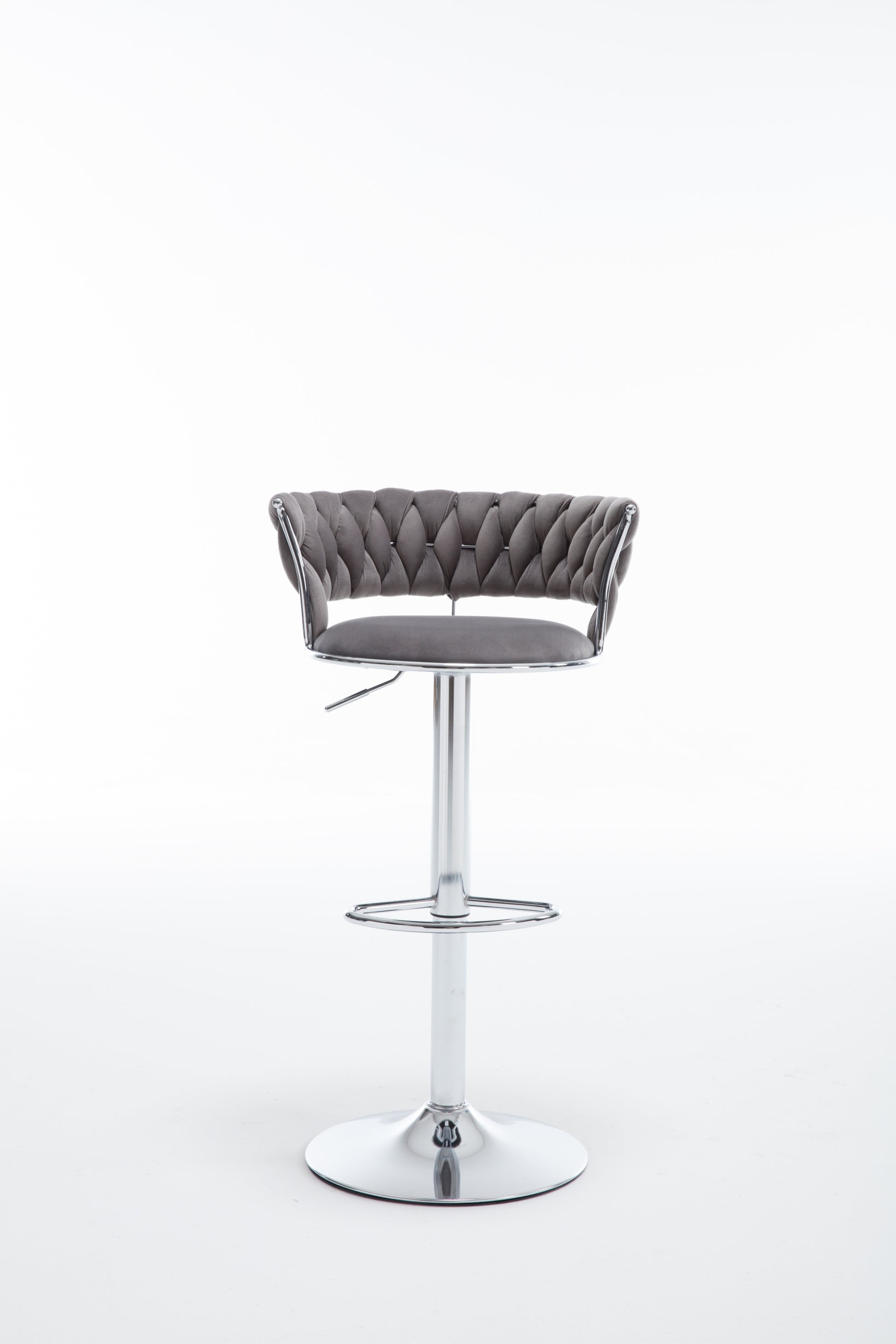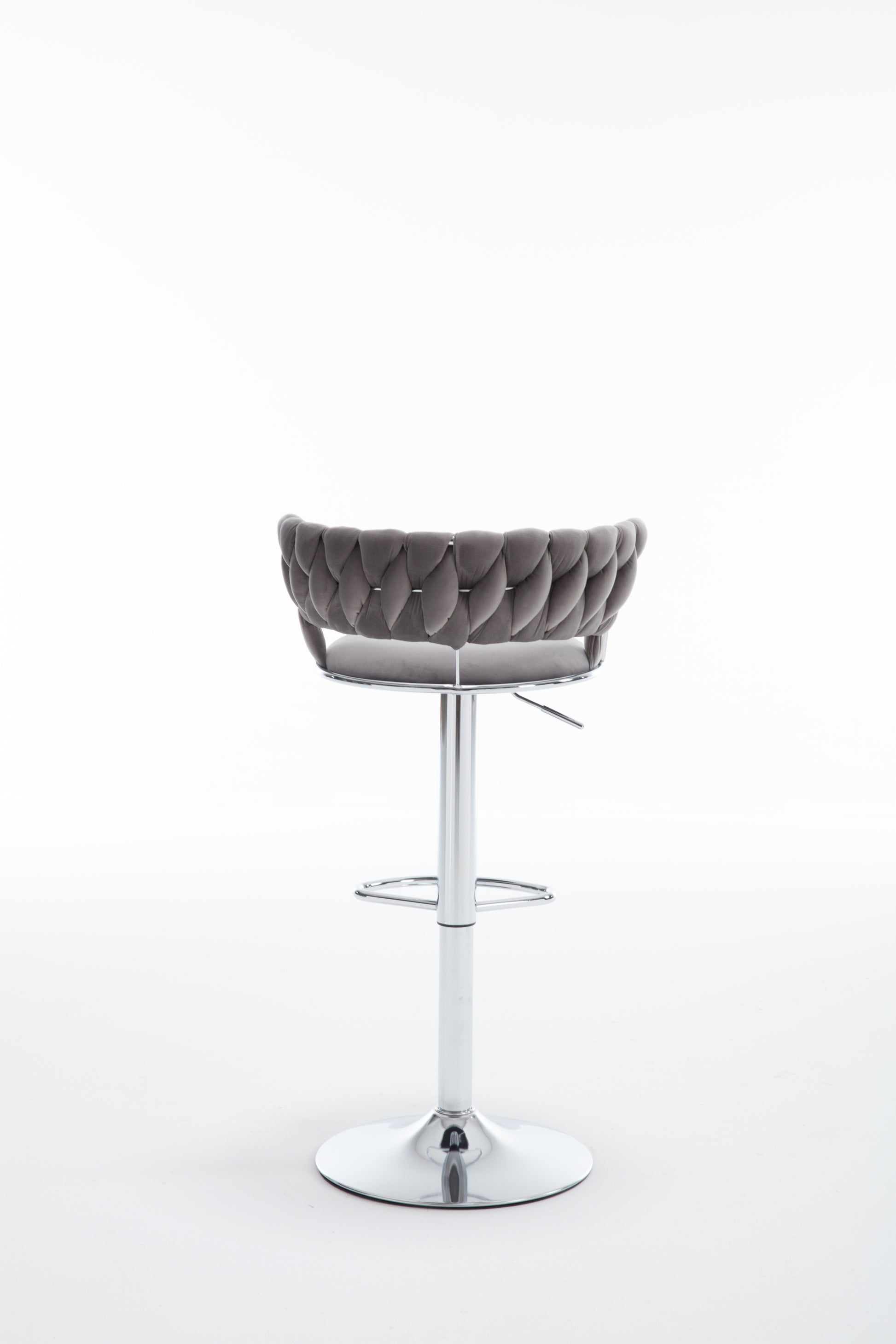 Set of 2 Bar Stools,with Chrome Footrest and Base Swivel Height Adjustable Mechanical Lifting Velvet + Bar Stool-GREY