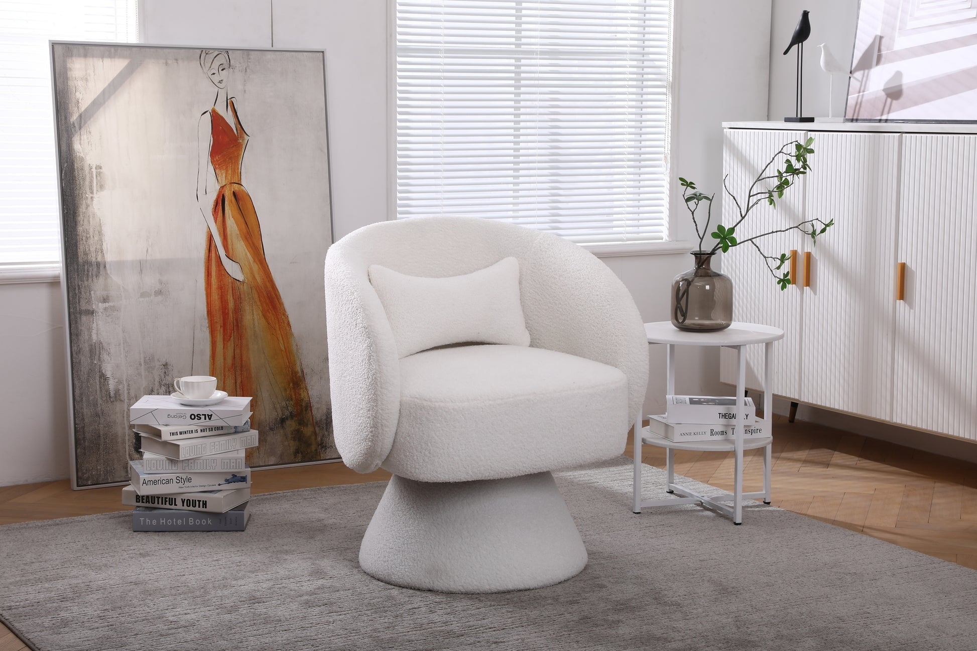 Swivel Accent Chair Armchair, Round Barrel Chair in Fabric for Living Room Bedroom(White)