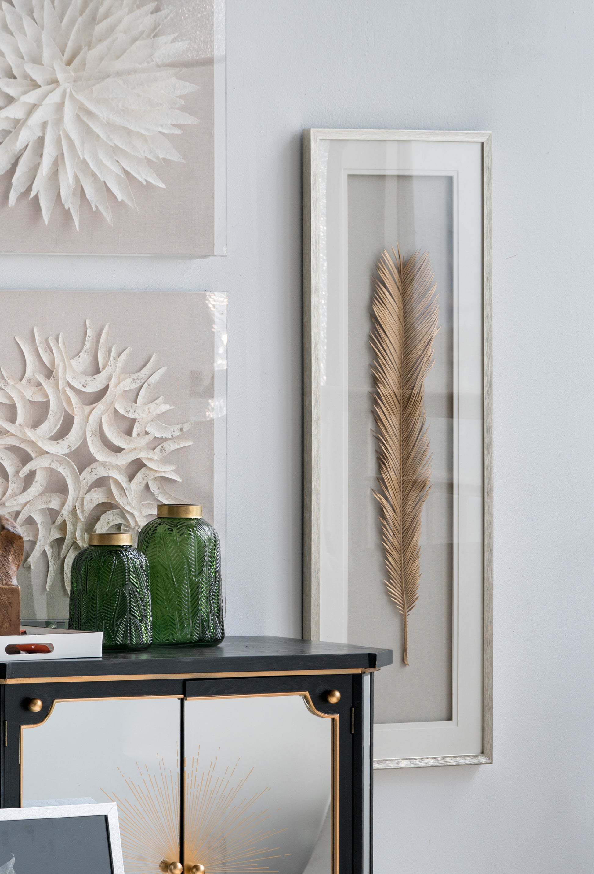 With its gentle shine, rich gold color, and simple framing, the Gold Leaf Framed Wall Art adds a lavish look to any home or office. With its impressive size, this piece of art creates a glamorous effect that is ideal for any grand space. Hang this art in a master bathroom, office, airy foyer, or vintage-inspired living room for instant shine and elegant style.