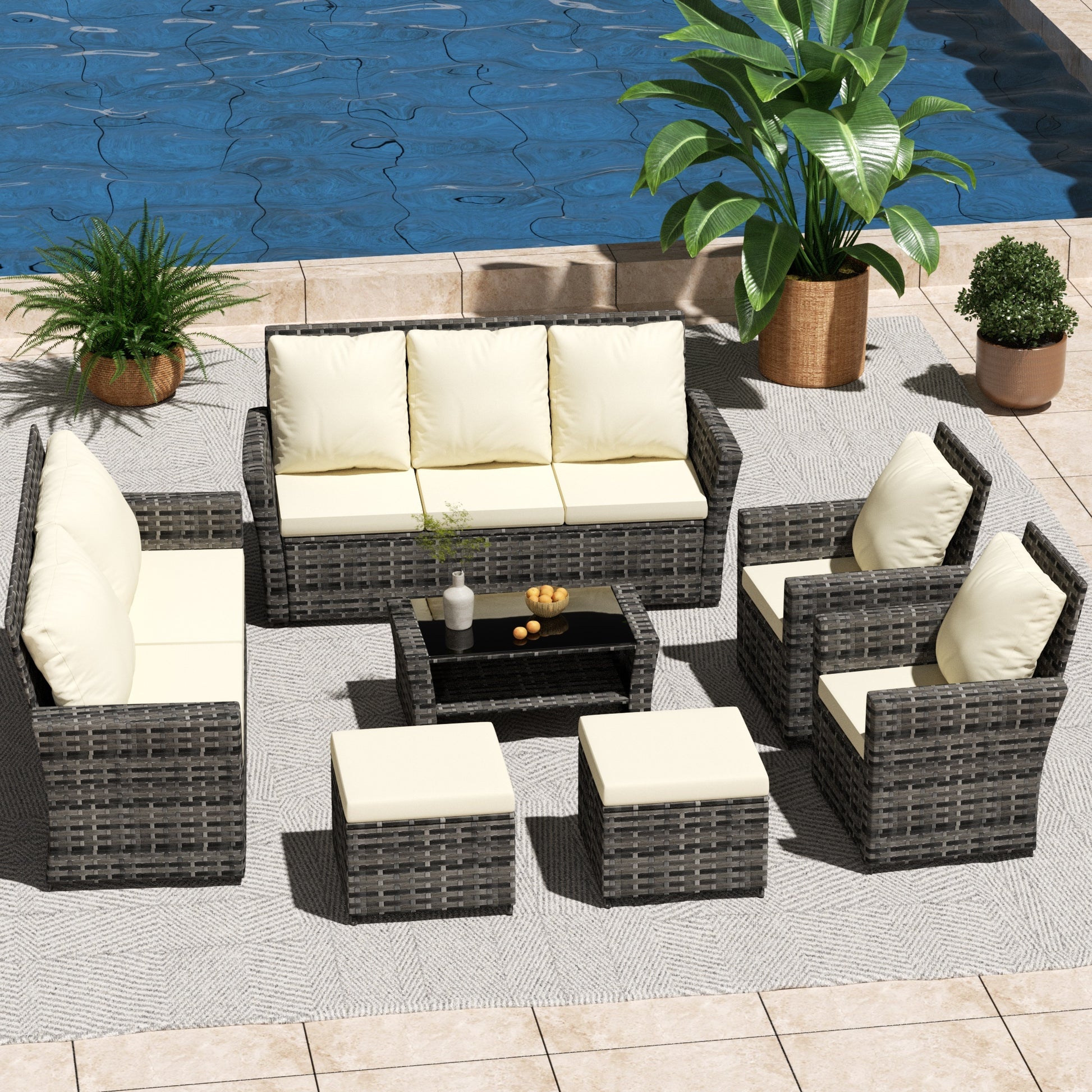 7 PCS PE/RATTAN OUTDOOR FURNITURE SET PATIO FURNITURE SET 9 SEATER
