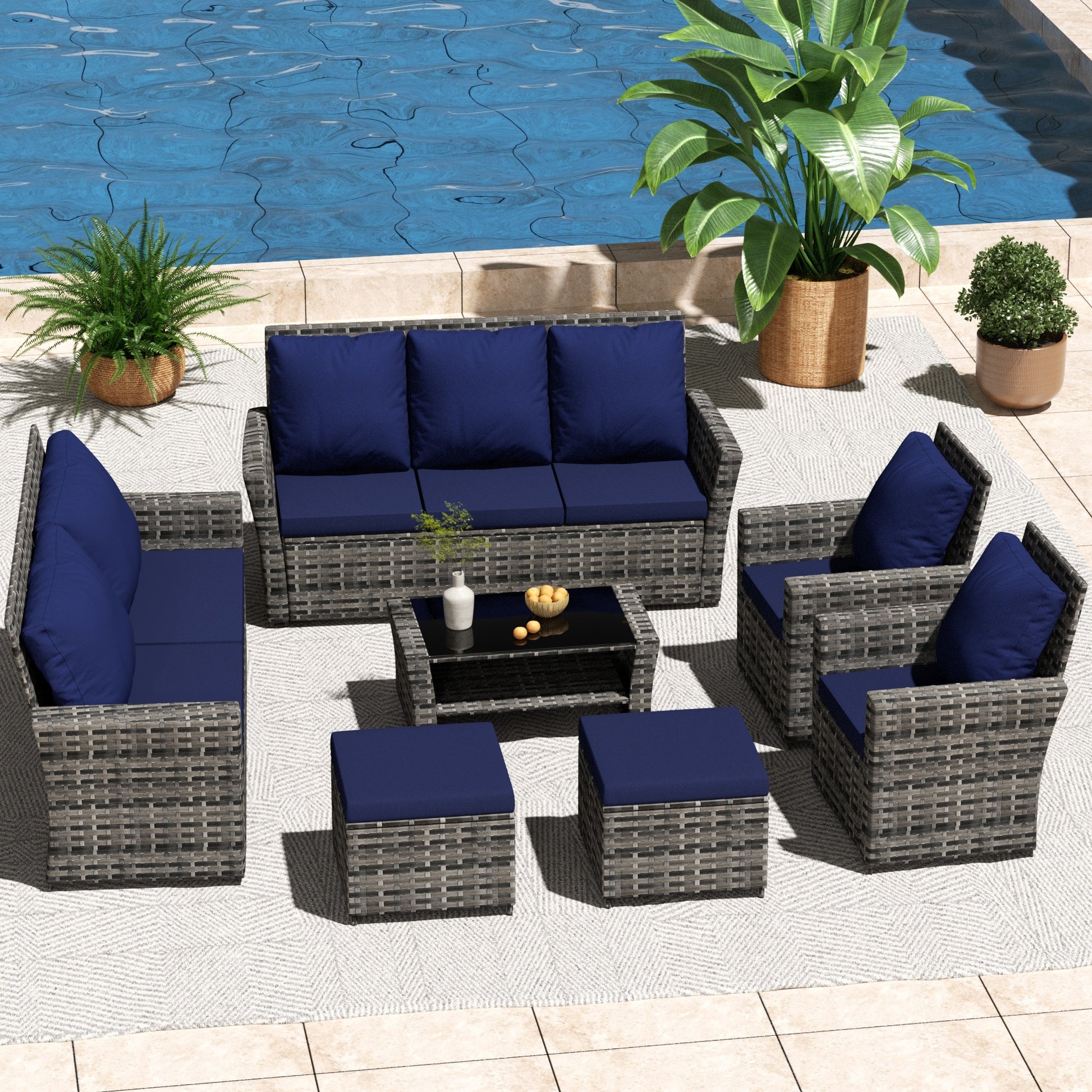 7 PCS PE/RATTAN OUTDOOR FURNITURE SET PATIO FURNITURE SET 9 SEATER