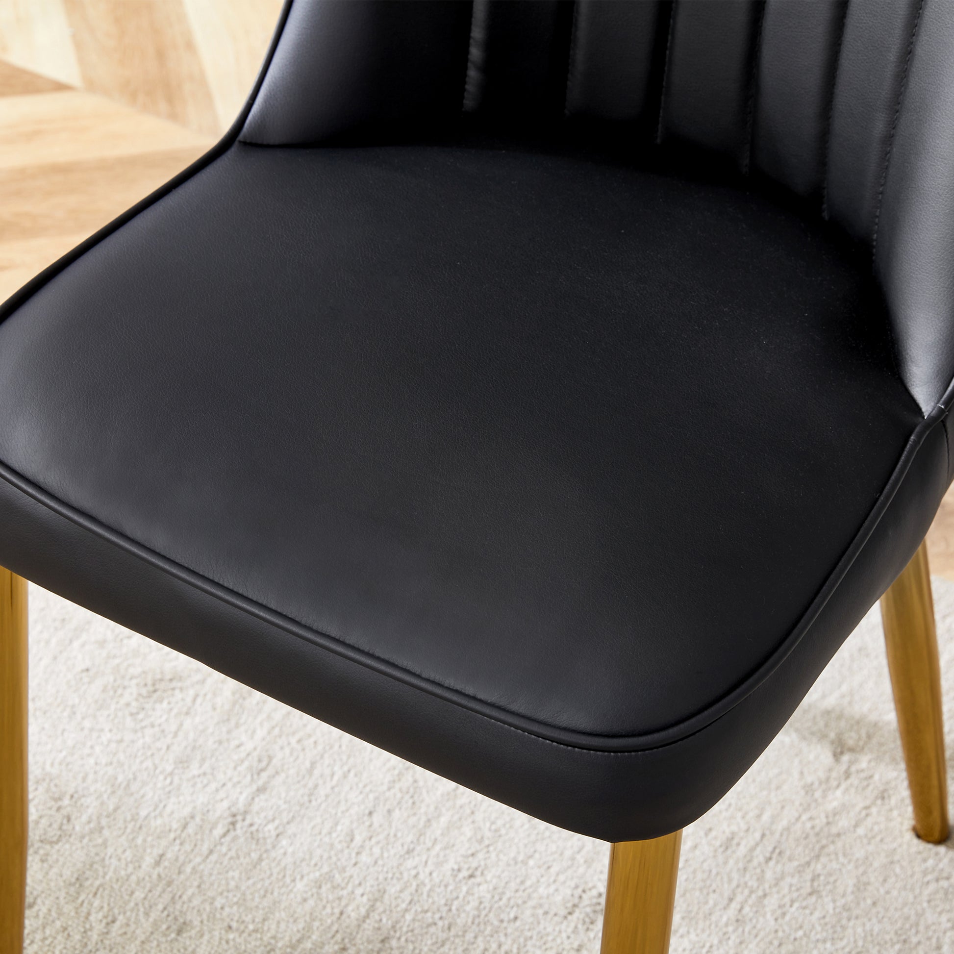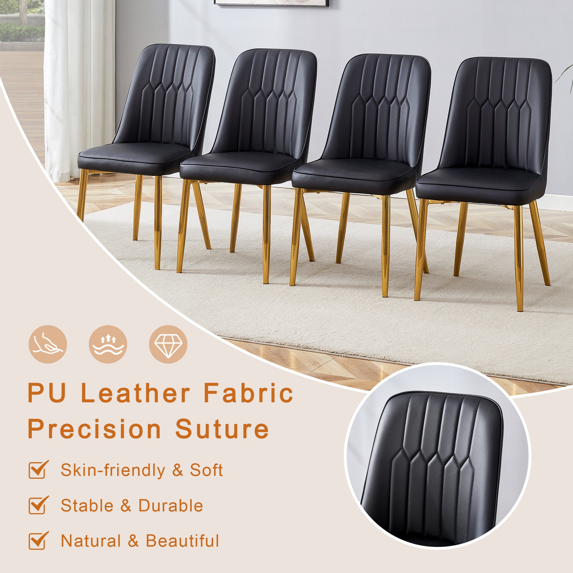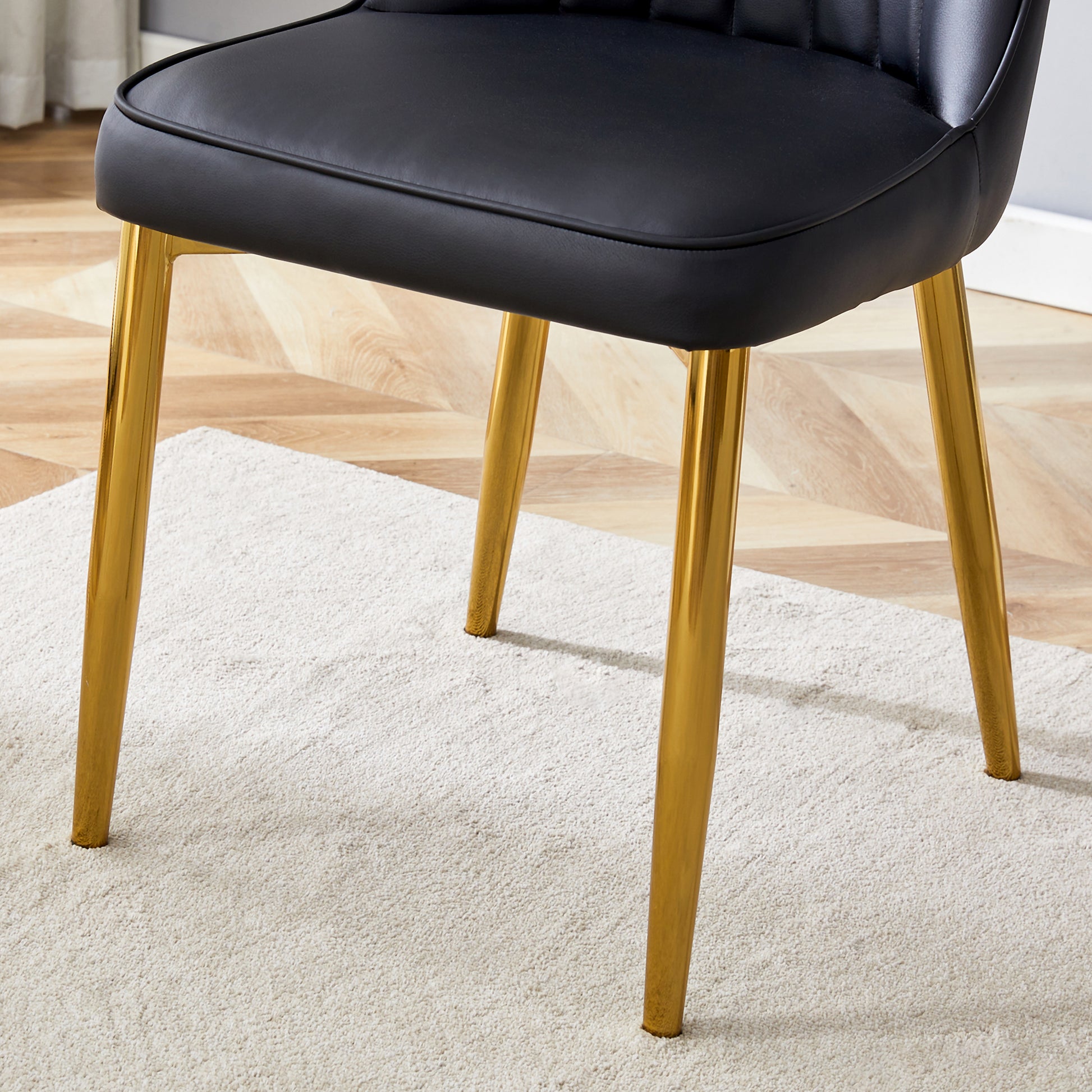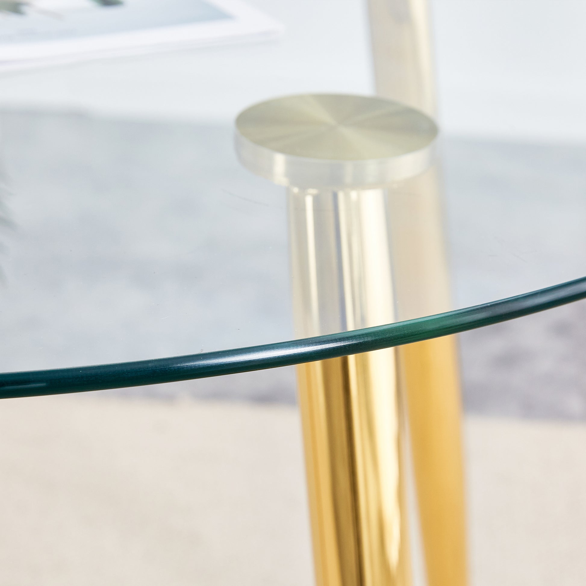 Table and chair set.36 Inch Diameter Modern Luxury Glass Dining Table and Chair Set - Gold Frame, Metal Legs.Two Black PU Chairs with Simple Line Designs On The Backrest.