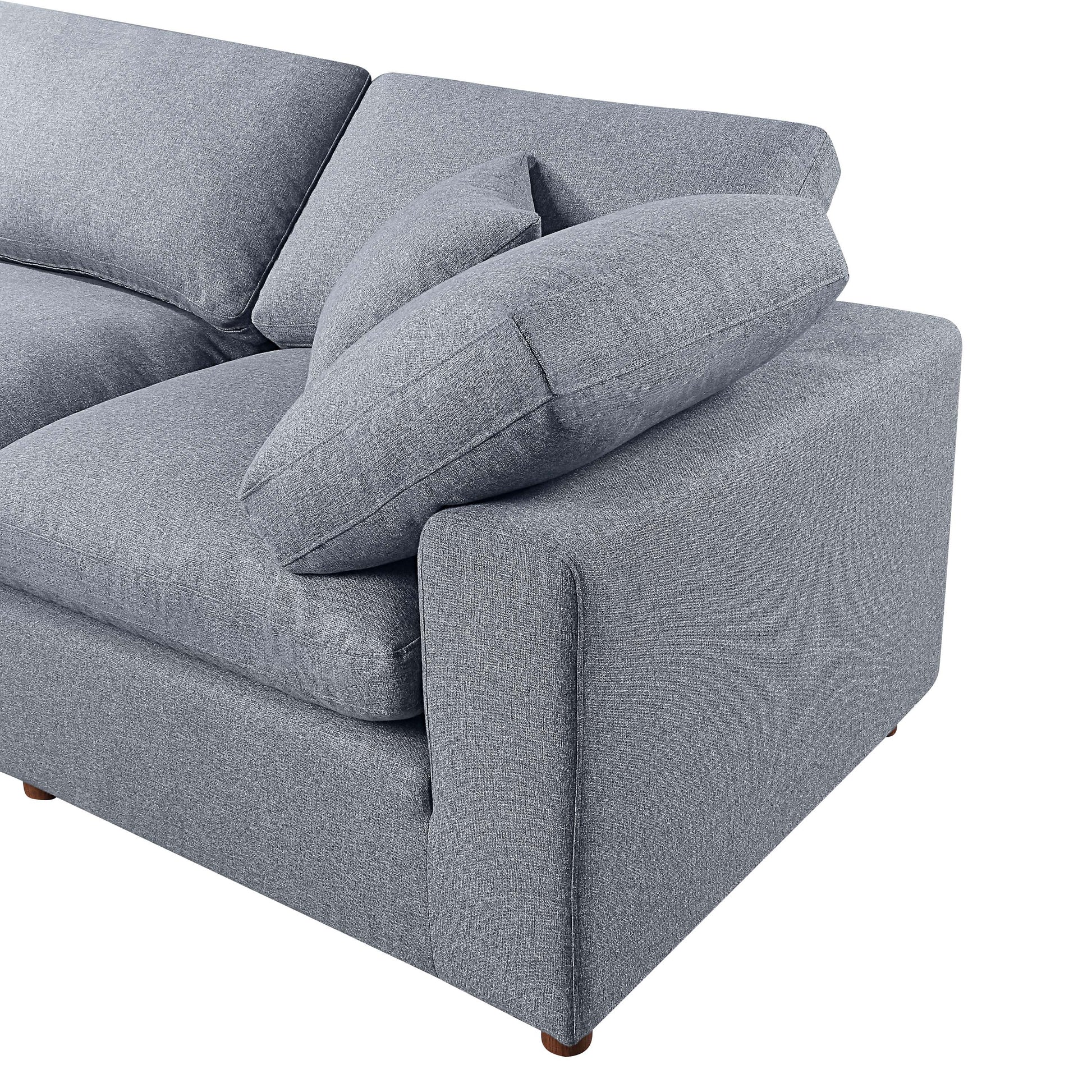 - Grey linen(5% Linen, 40% Viscose& 55% polyester) filled with down feather, gives you perfect comfort and gives good support for your body. Sofa are not deformed after sitting on them for a long time. You can relax in this set after hard work and enjoy leisure time. Solid wood structures and soild wood legs are more sturdy and durable.