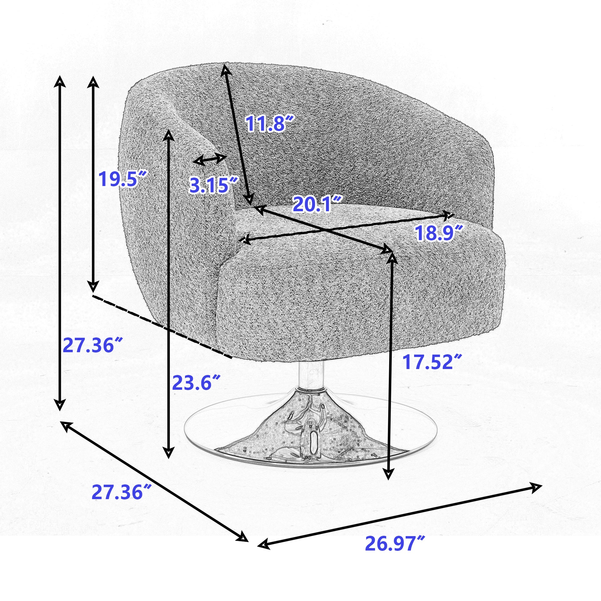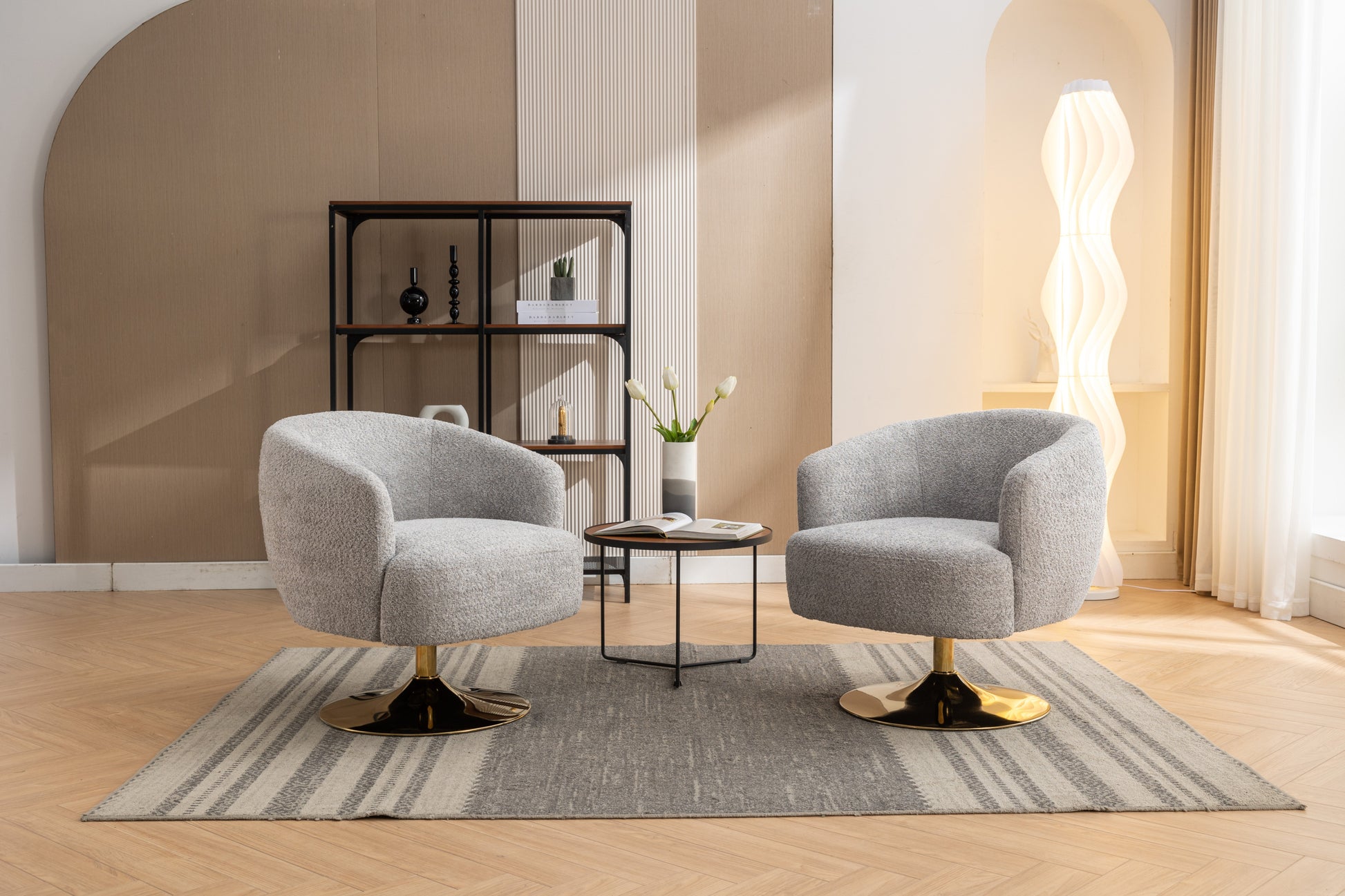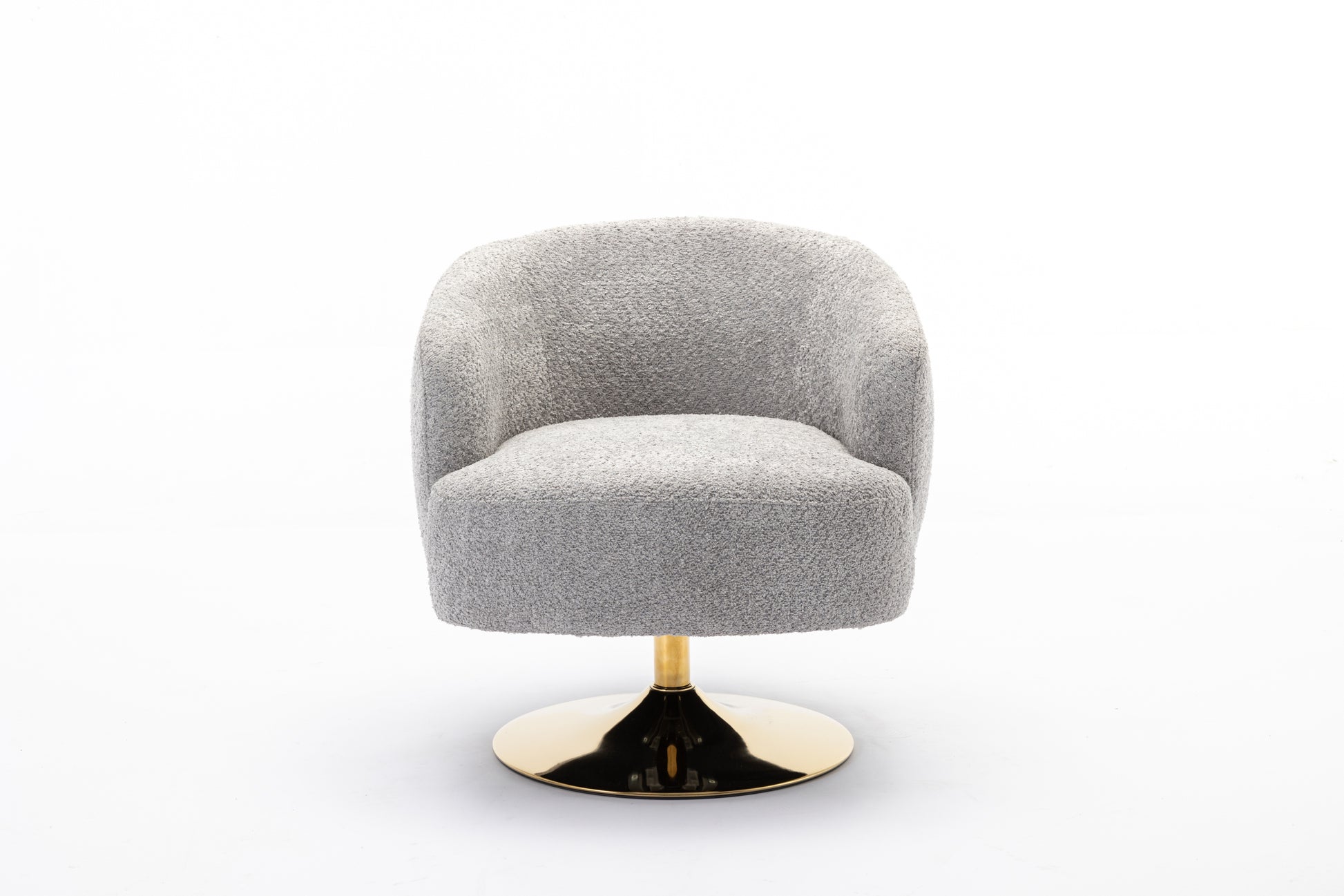 048-Chenille Fabric Accent Swivel Chair With Gold Metal Round Base,Light Gray