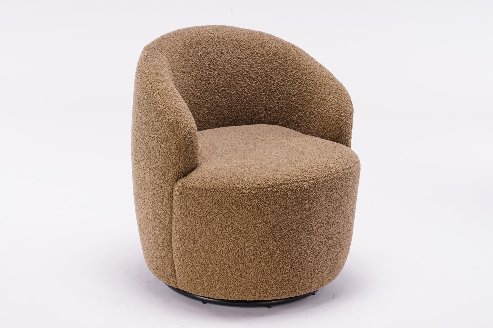 Teddy Fabric Swivel Accent Armchair Barrel Chair With Black Powder Coating Metal Ring,Coffee Brown