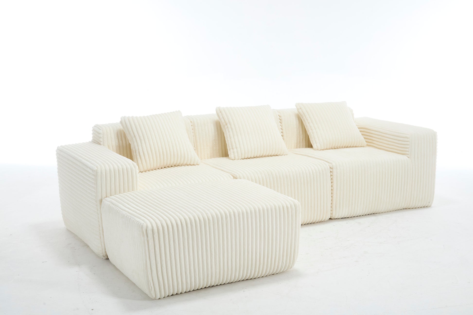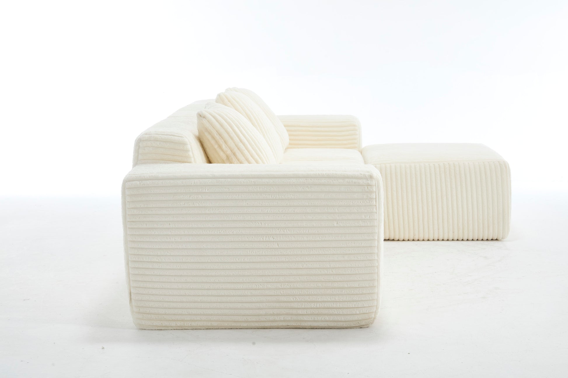 Modern Minimalist Modular Sectional Sofa, L-Shape Upholstered Cloud Couch with Deep Seats, Right Facing Chaise for Living Room-White
