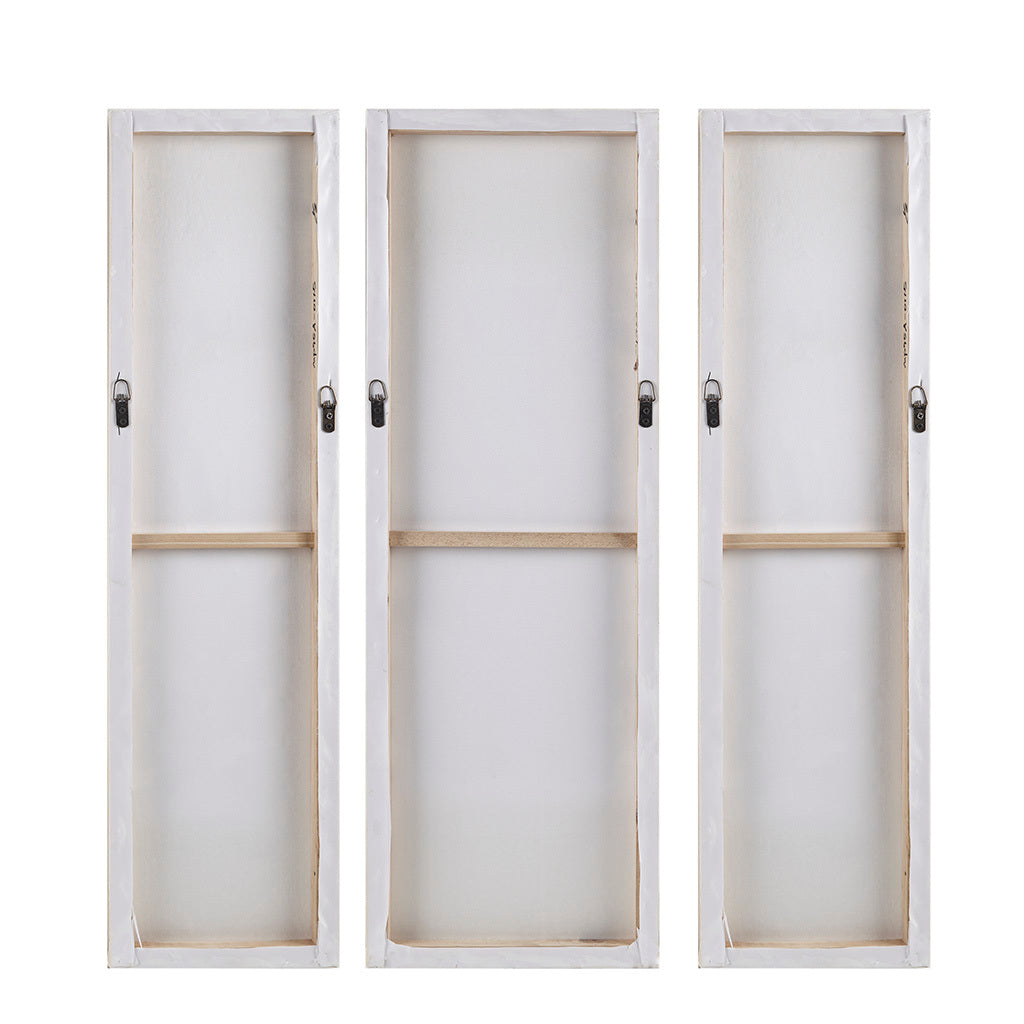 - A set of 3 with center piece measuring 11.8" W x 35.5"H and side pieces measuring 9.25"W x 35.5"H