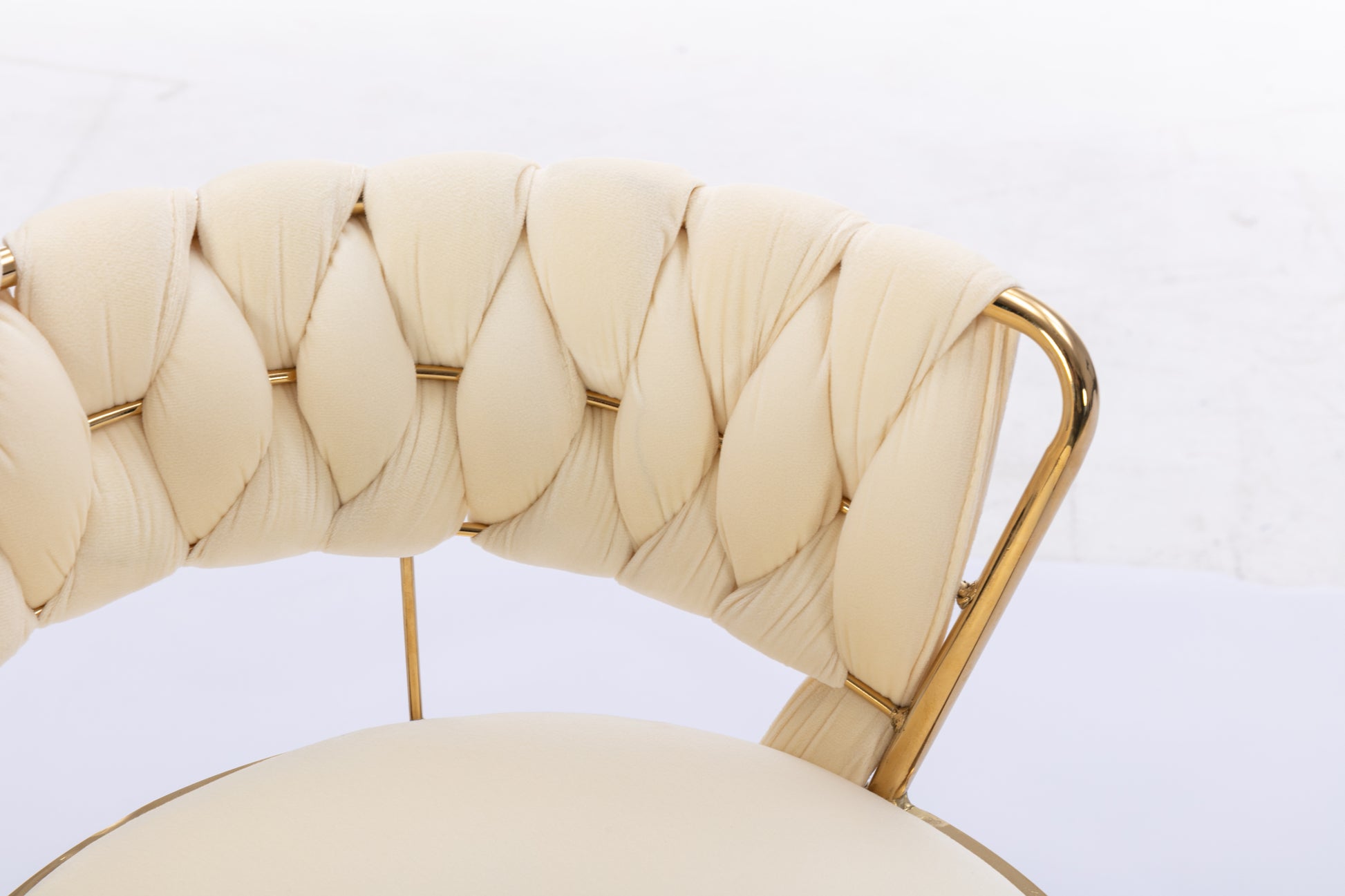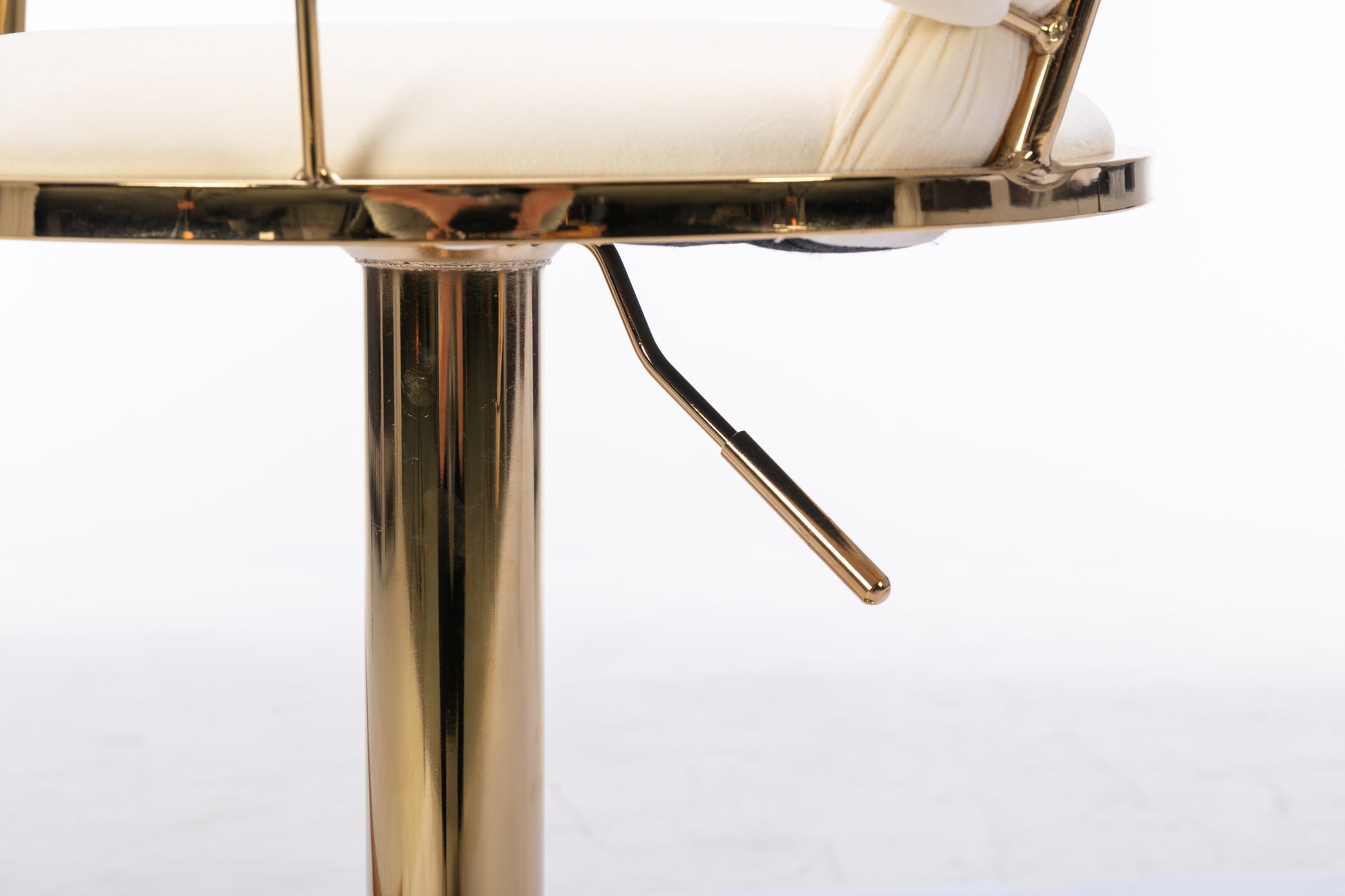 Set of 2 Bar Stools,with Chrome Footrest and Base Swivel Height Adjustable Mechanical Lifting Velvet + Golden Leg Simple Bar Stool-Cream