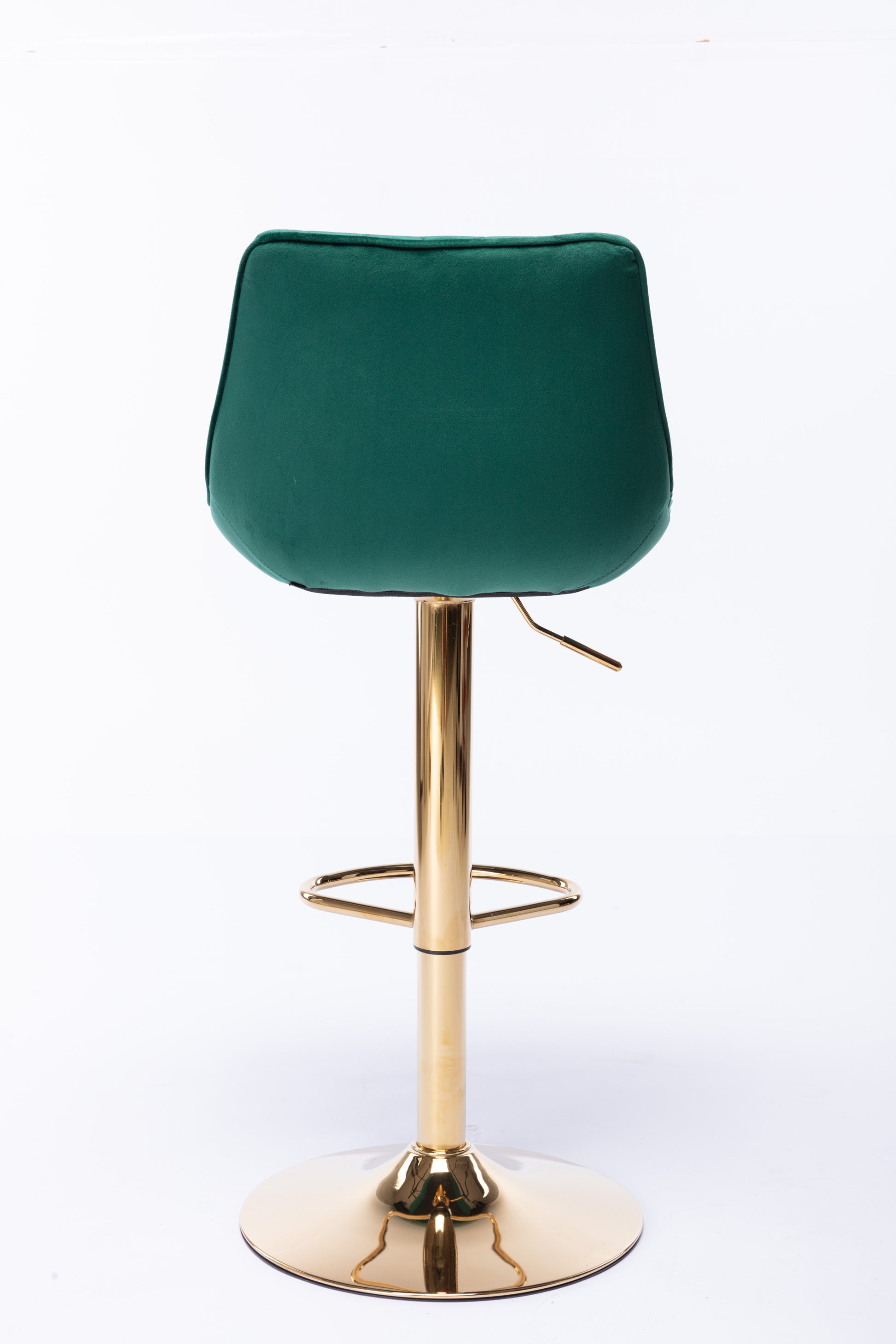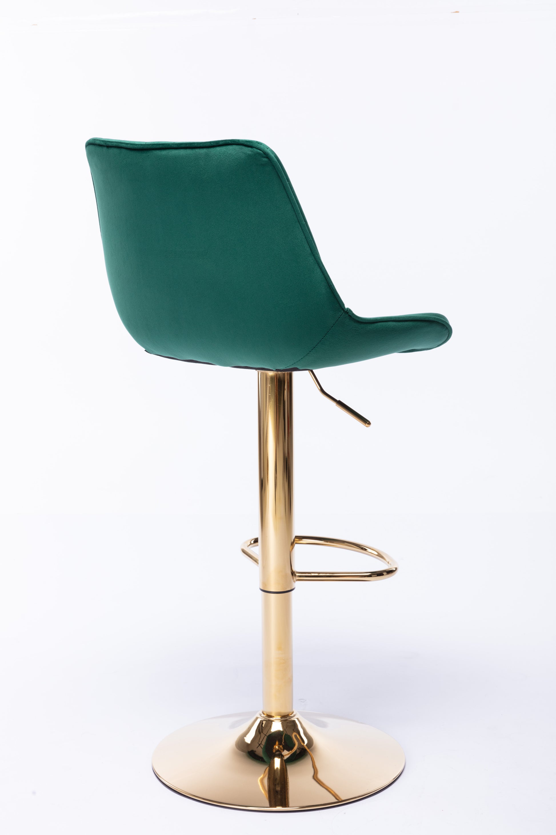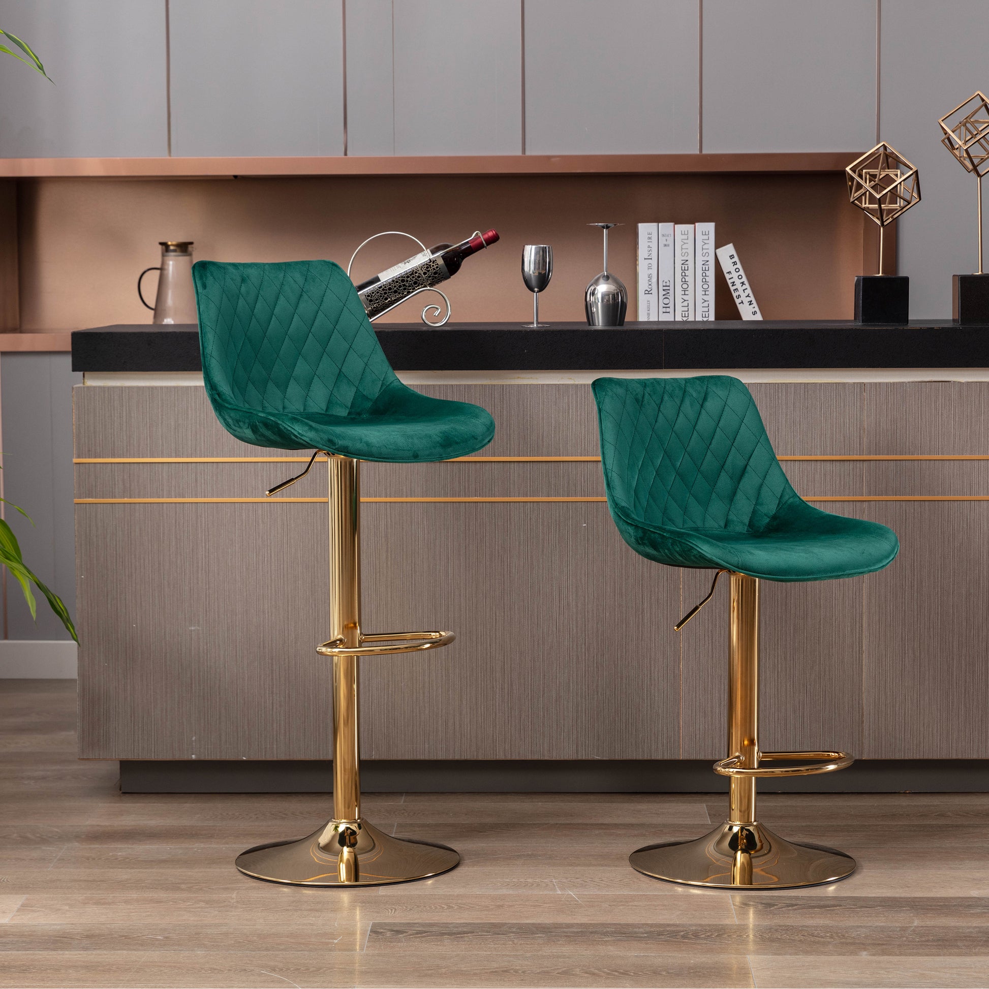 Set of 2 Bar Stools,with Chrome Footrest and Base Swivel Height Adjustable Mechanical Lifting Velvet + Golden Leg Simple Bar Stool-green