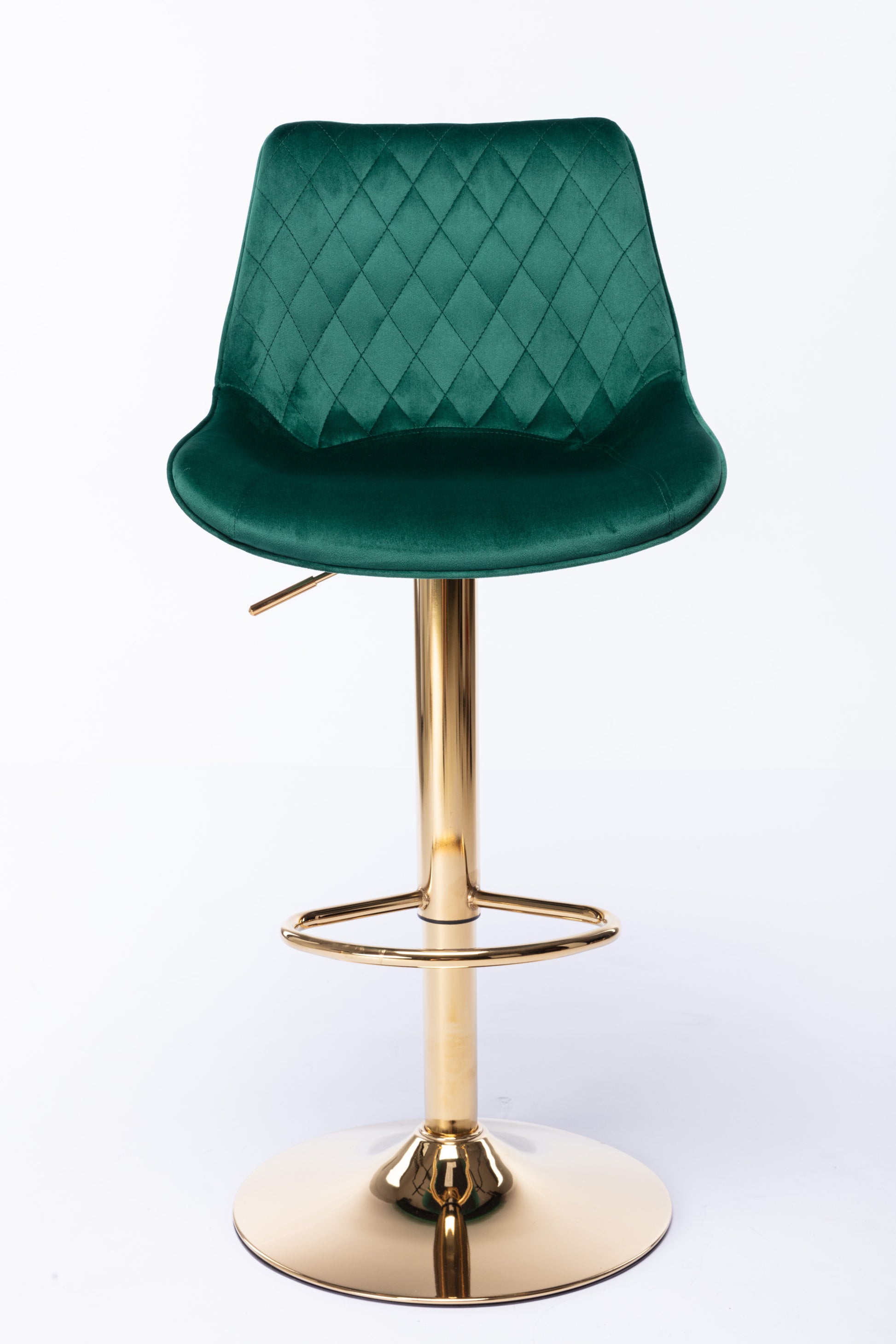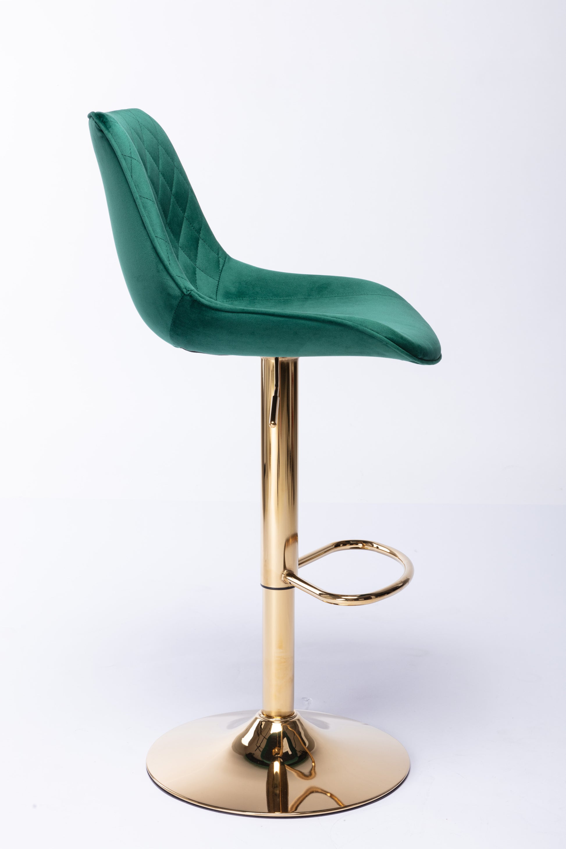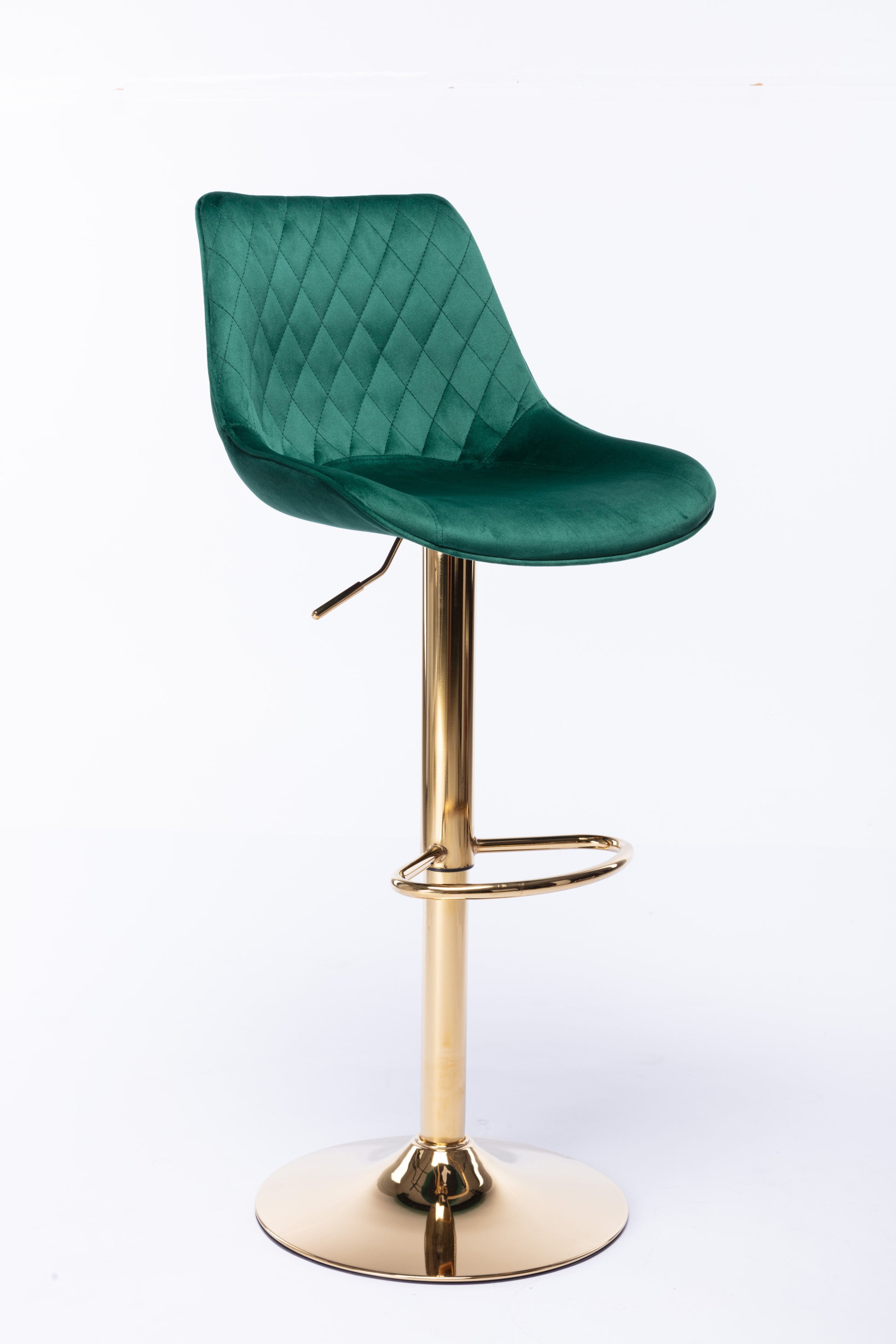 Set of 2 Bar Stools,with Chrome Footrest and Base Swivel Height Adjustable Mechanical Lifting Velvet + Golden Leg Simple Bar Stool-green