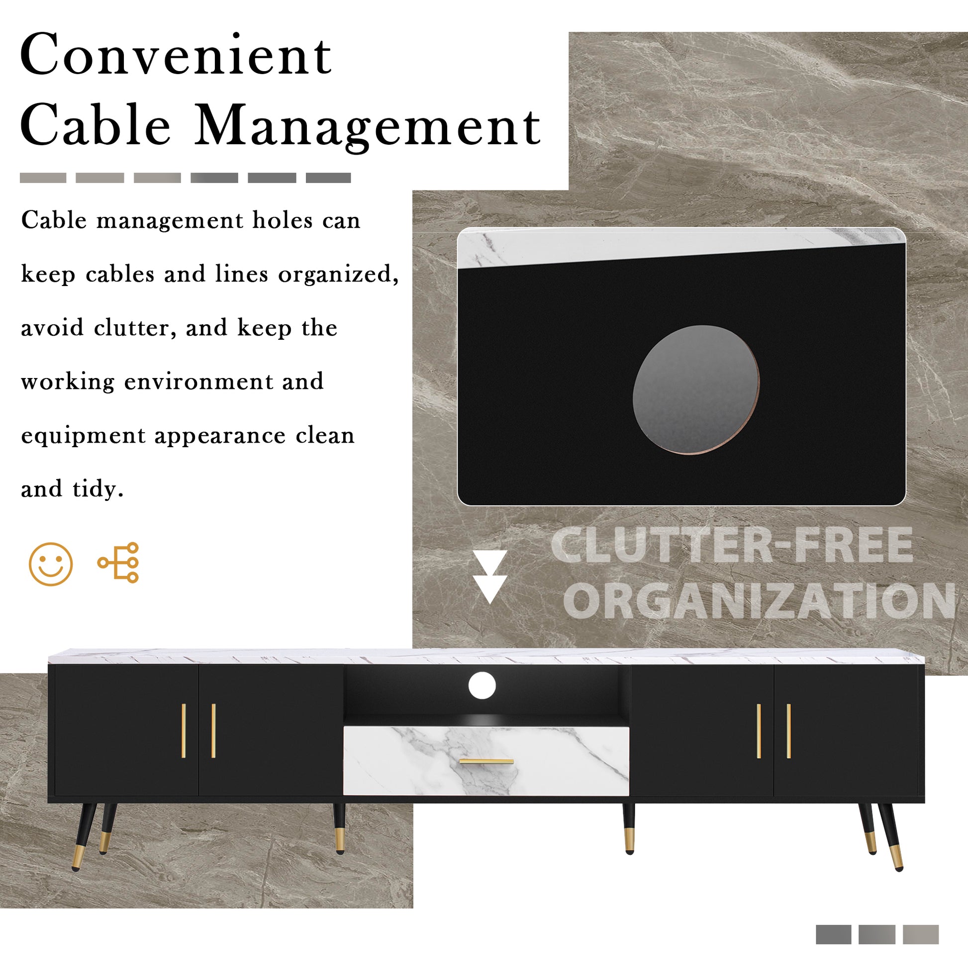 - [ Upgrade Anti-Rust Process & Silent Design ] We use anti-rust cabinet door pins to extend the life of the product. At the same time, the legs of the TV cabinet are also electroplated to prevent metal oxidation. This process not only improves the wear resistance of the TV cabinet legs, but also makes the entertainment center more beautiful.
