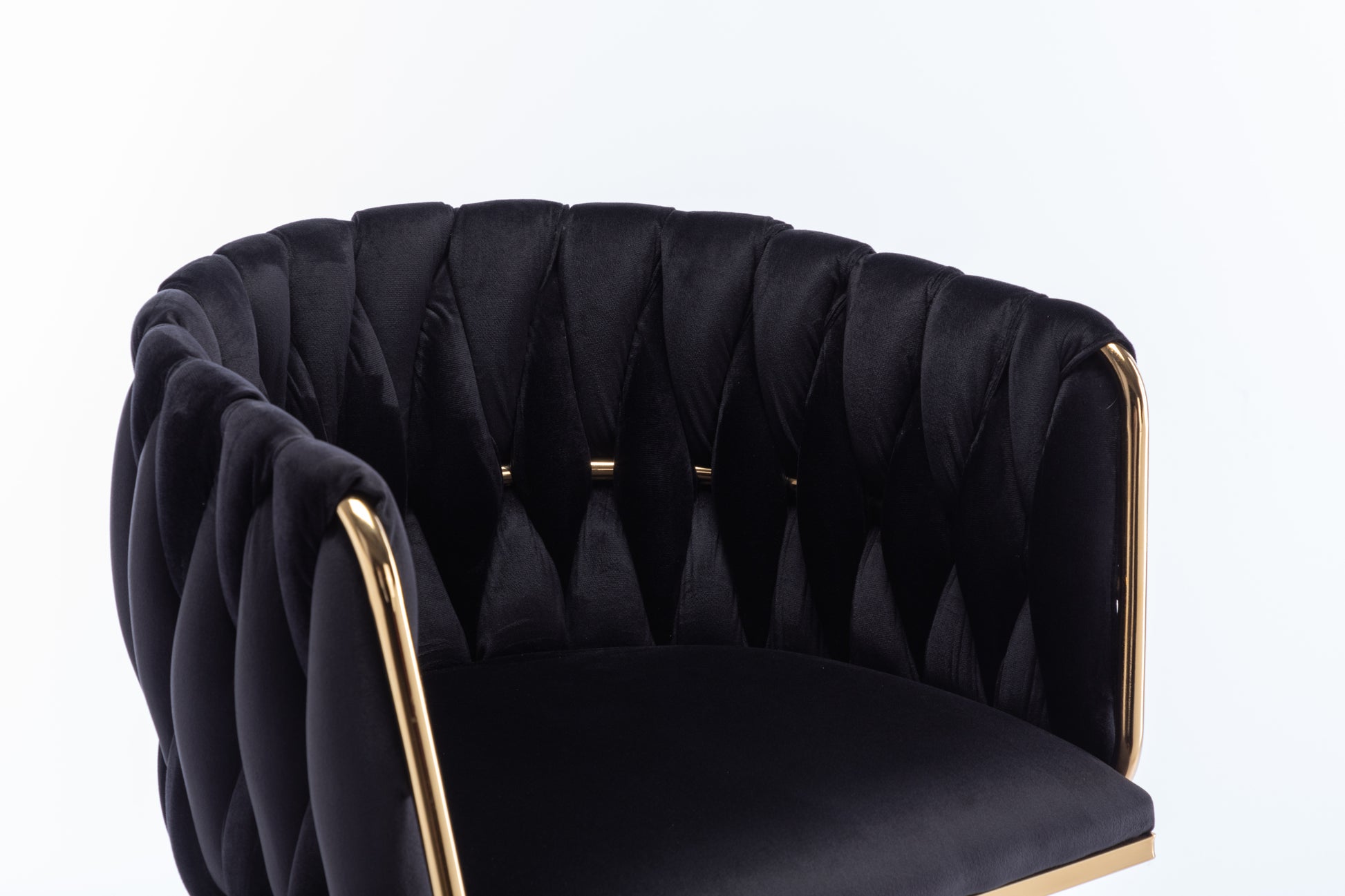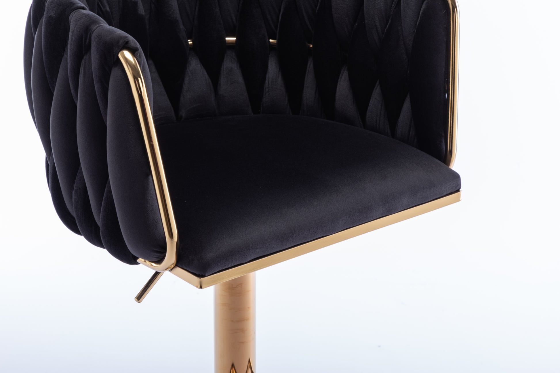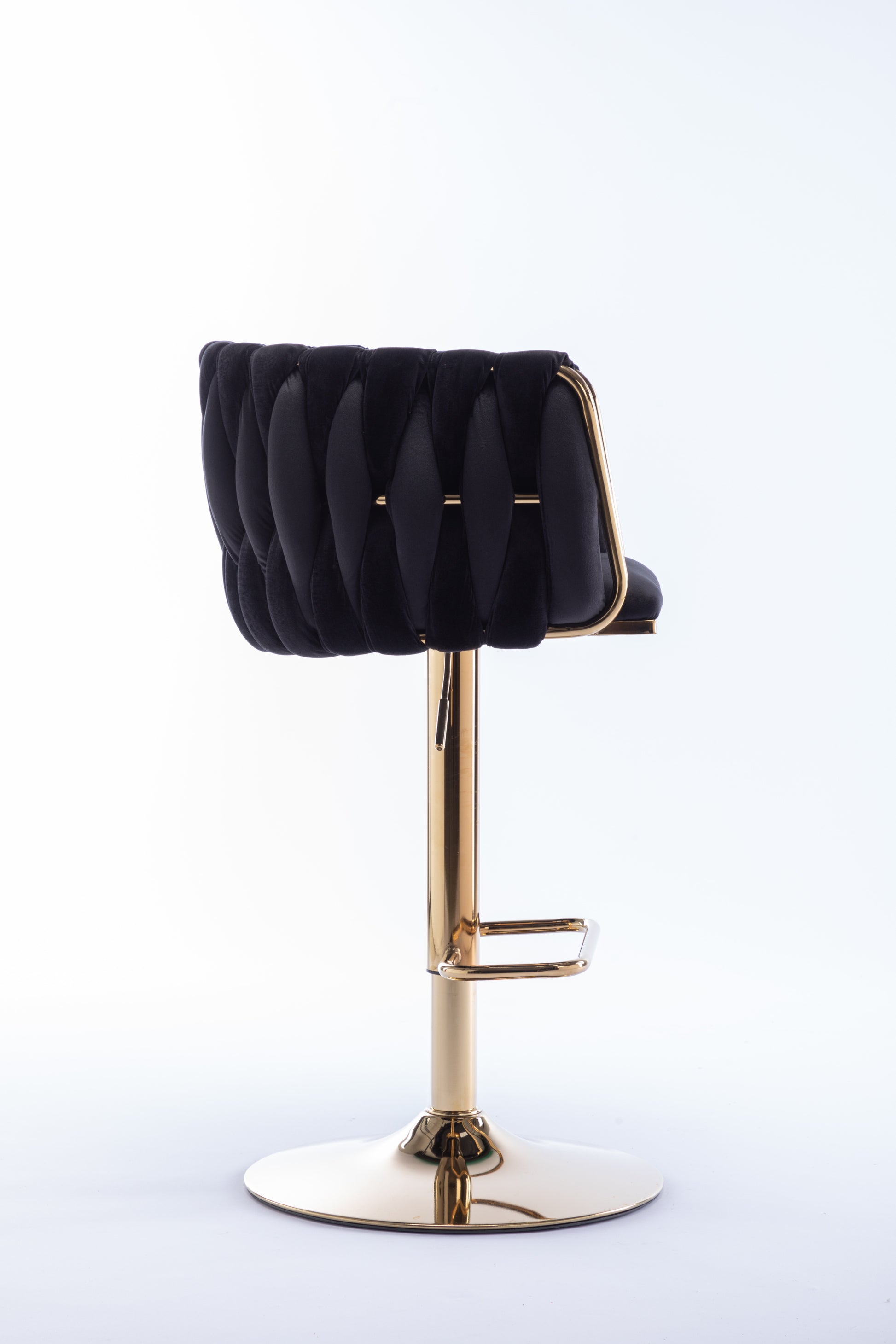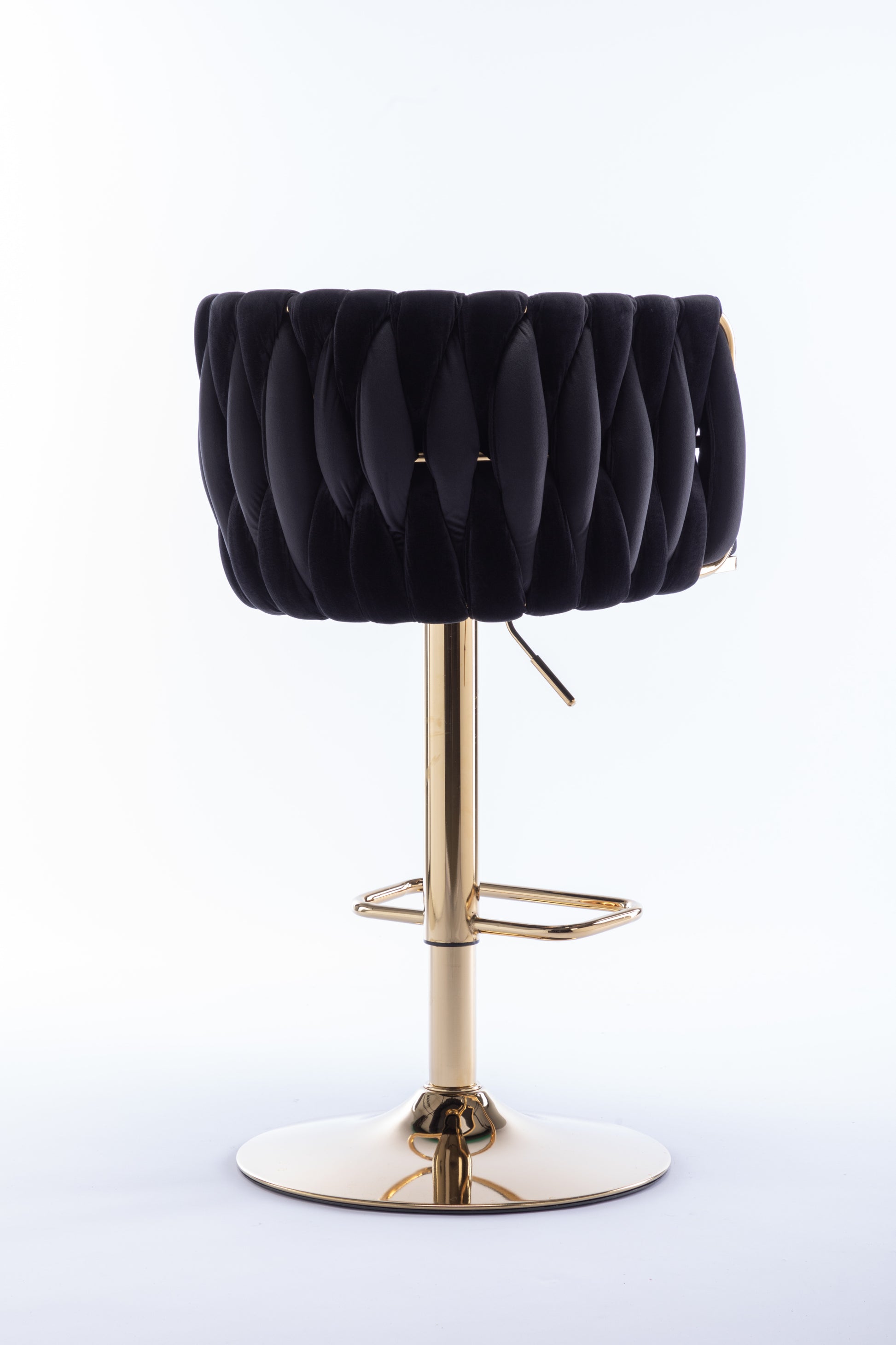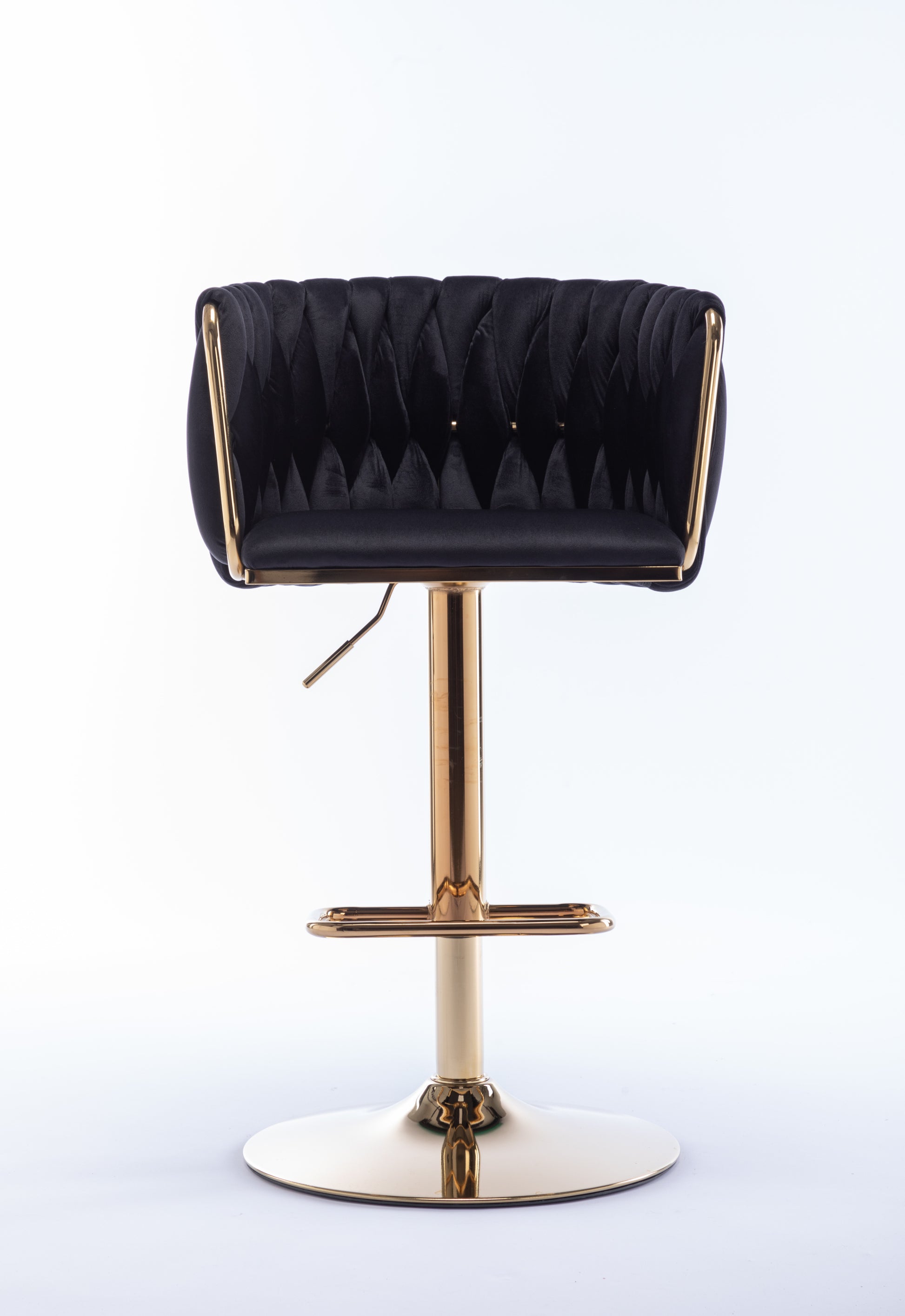 Set of 2 Bar Stools,with Chrome Footrest and Base Swivel Height Adjustable Mechanical Lifting Velvet + Golden Leg Simple Bar Stool-Black