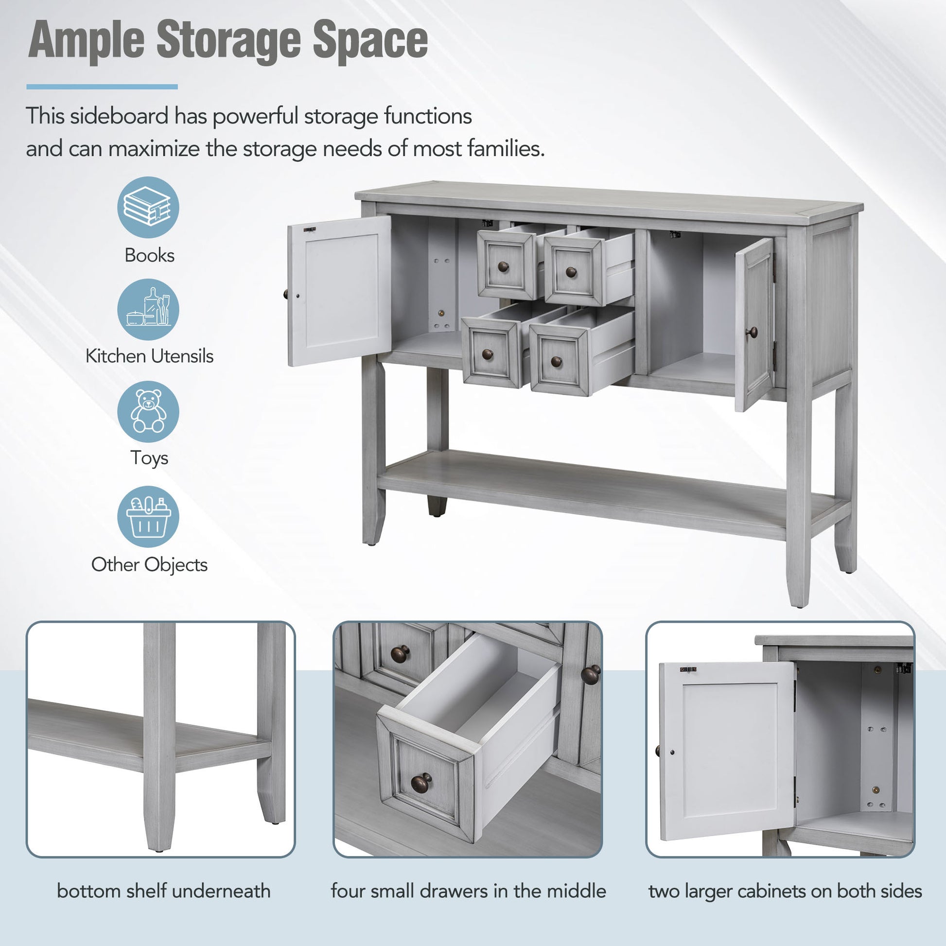TREXM Cambridge Series Ample Storage Vintage Console Table with Four Small Drawers and Bottom Shelf for Living Rooms, Entrances and Kitchens (Antique Gray, OLD SKU: WF190263AAE)