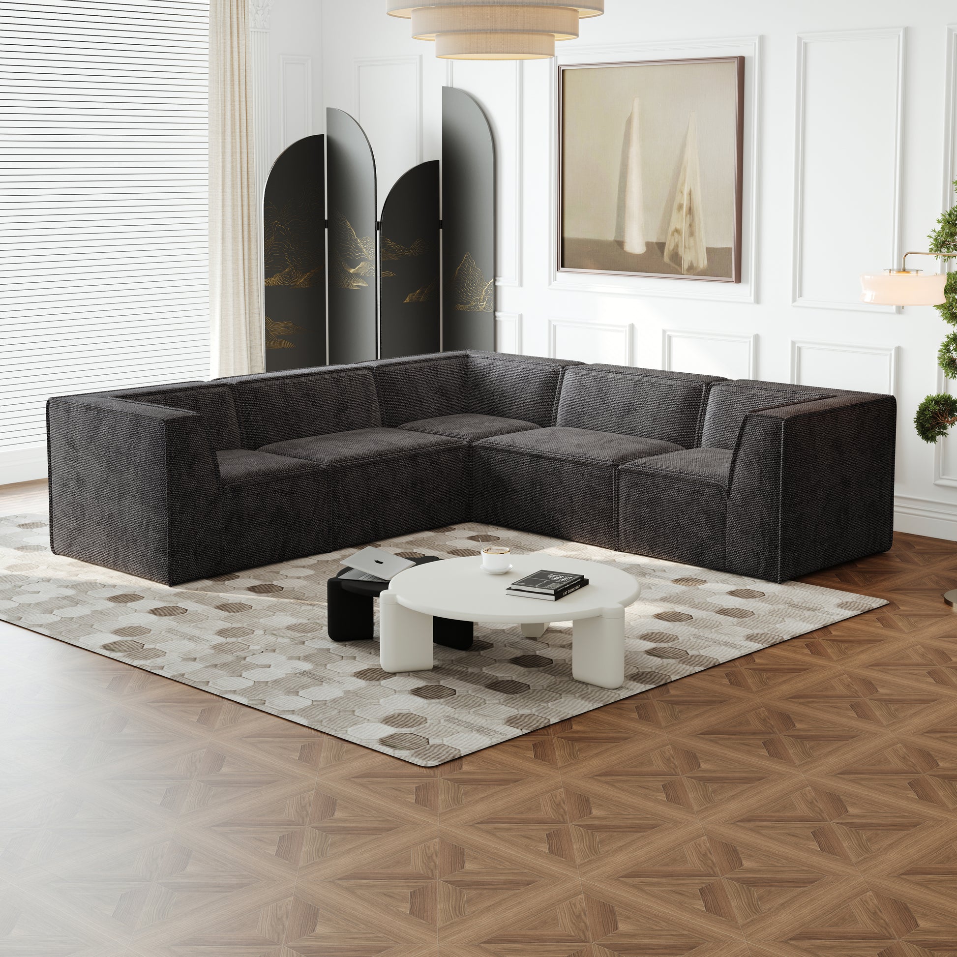 106*106" Chenille Modular L Shaped Sectional Sofa,Luxury Floor Couch Set,Upholstered Indoor Furniture,Foam-Filled Compressed Sofa for Living Room,Bedroom,5 PC Free Combination