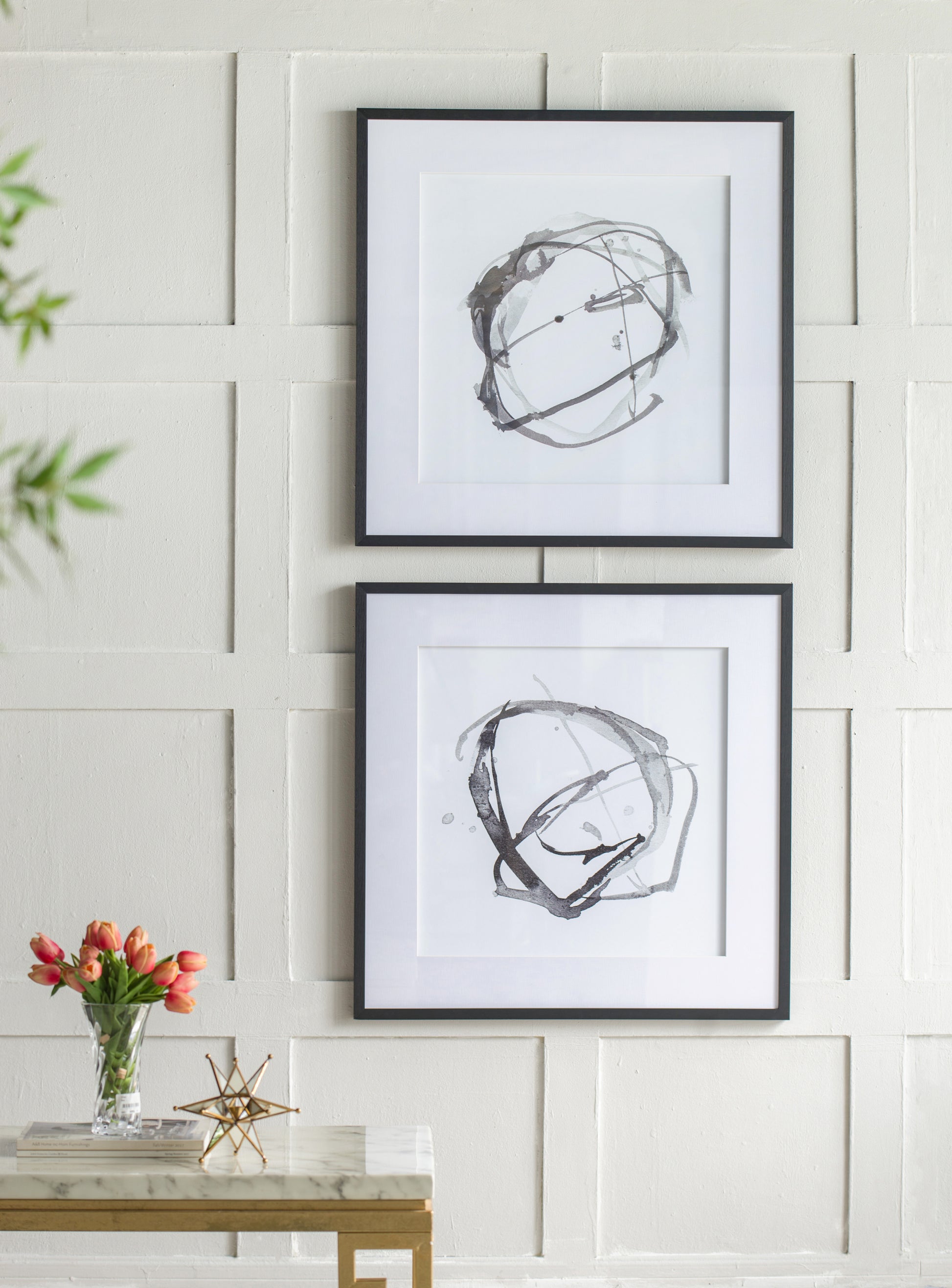 Set of 2 Modern Abstract Wall Art, Square Framed Wall Art, 31.5" x 31.5"