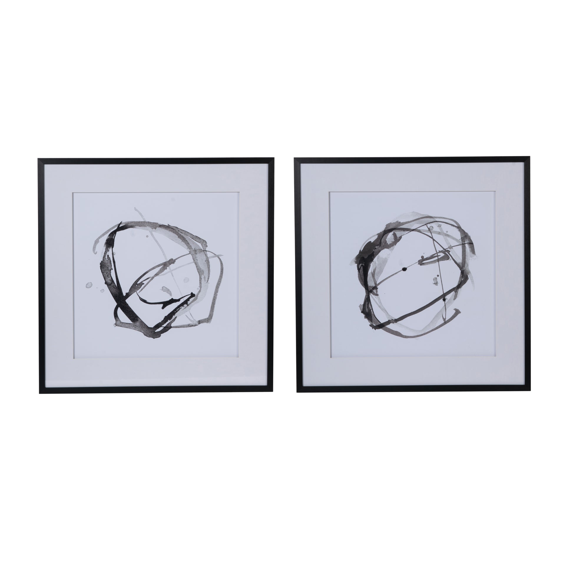Modern and bold, this set of prints features the lush look of watercolors in chic, contrasting shades of black, gray, and white. Add these dynamic prints to a handsome office, contemporary living room, or crisp master bathroom for a sleek look. Perfect on a vibrant, colorful wall, these prints also create a dramatic, monochromatic effect against a white wall.