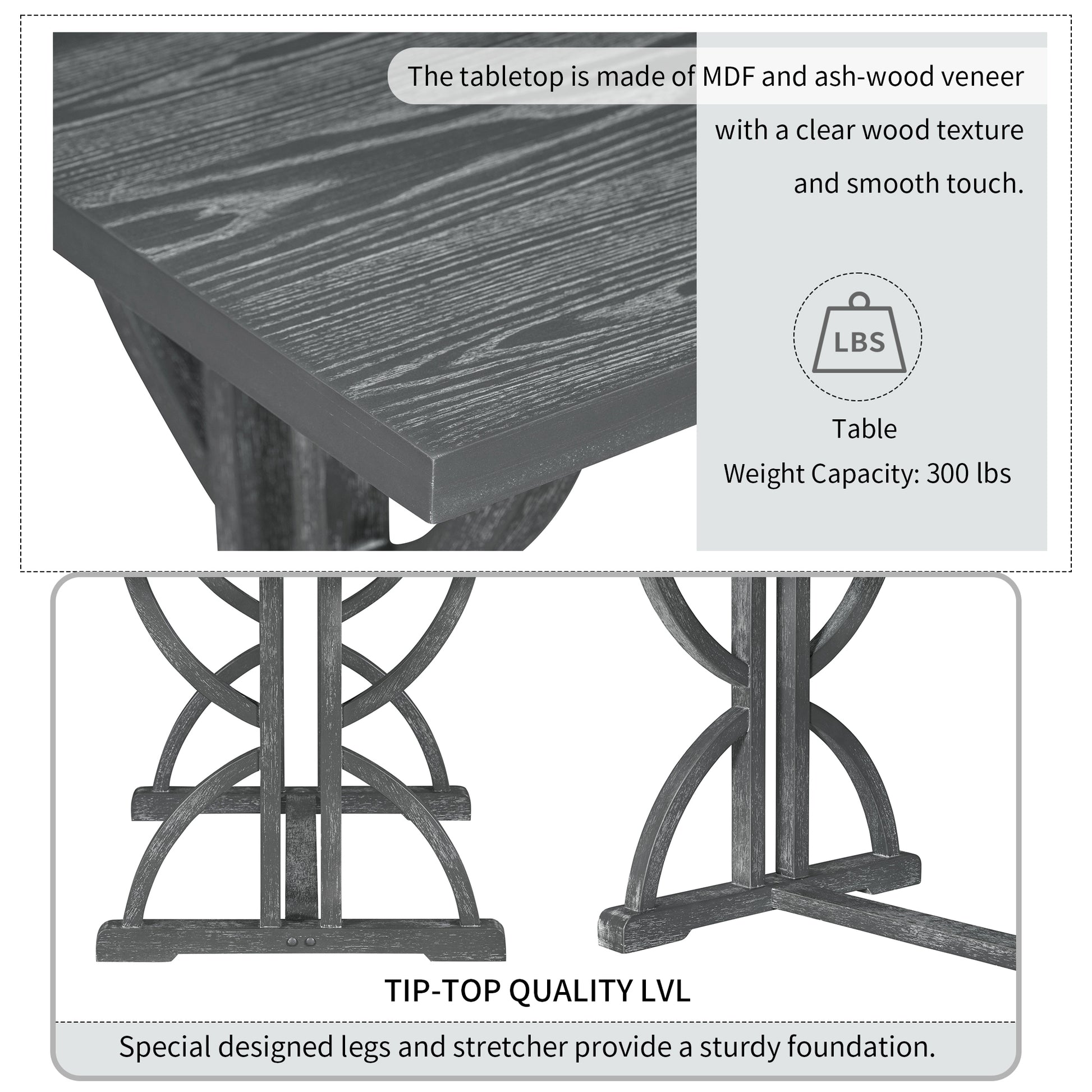 TREXM 6-Piece Retro Rectangular Dining Table Set, Table with Unique Legs and 4 Upholstered Chairs & 1 Bench for Dining Room and Kitchen (Gray Wash)