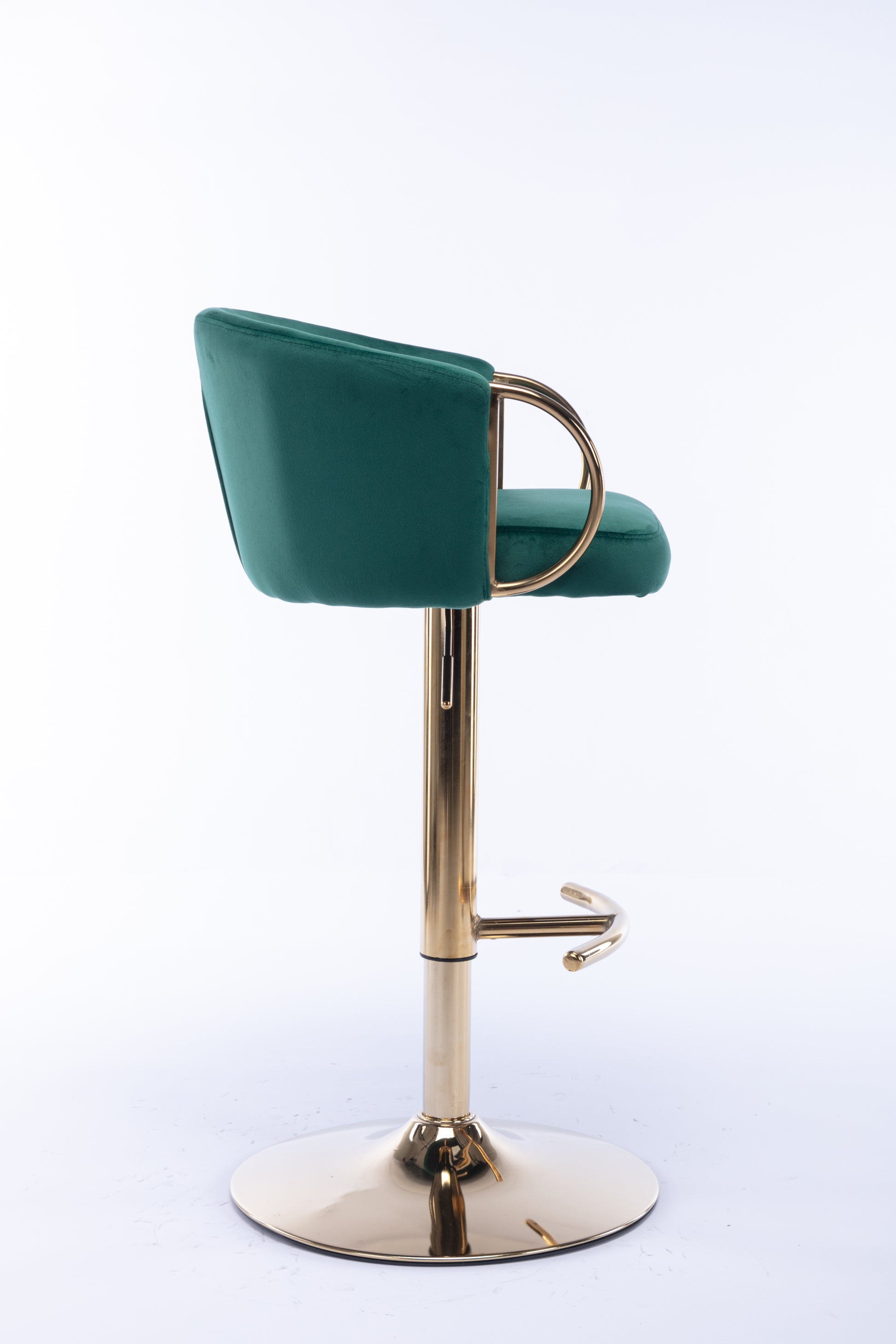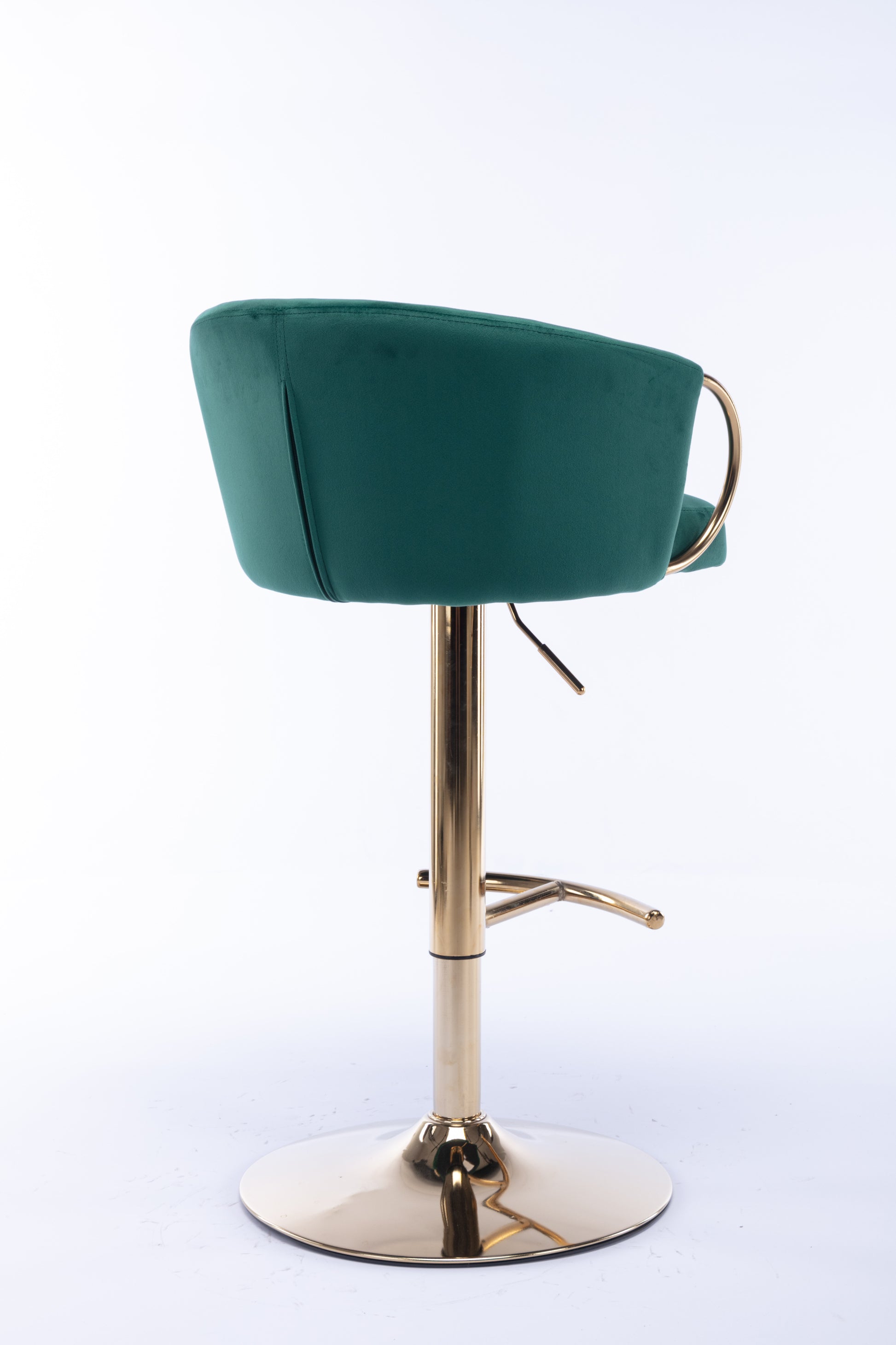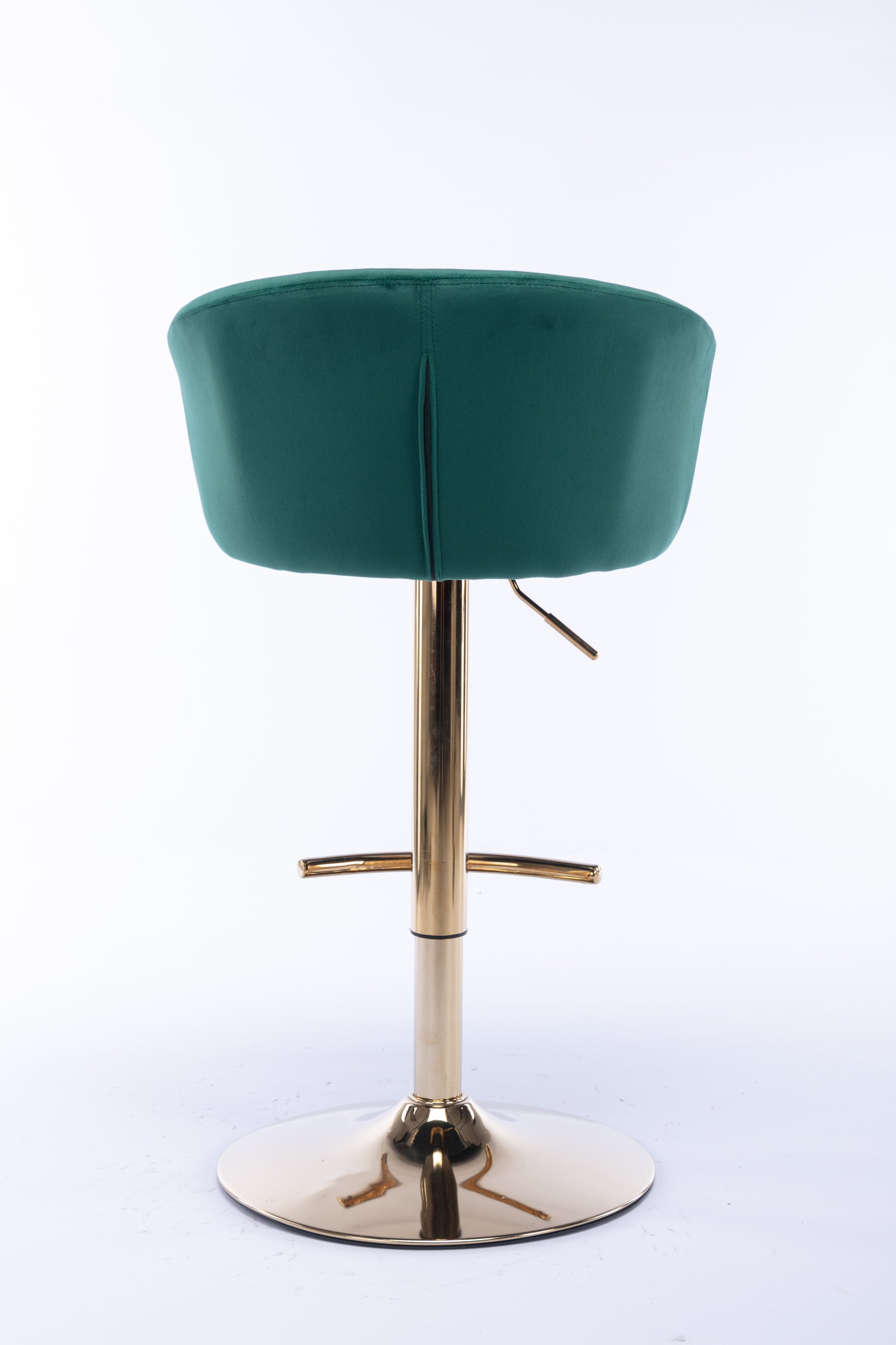 Set of 2 Bar Stools,with Chrome Footrest and Base Swivel Height Adjustable Mechanical Lifting Velvet + Golden Leg Simple Bar Stool-Green