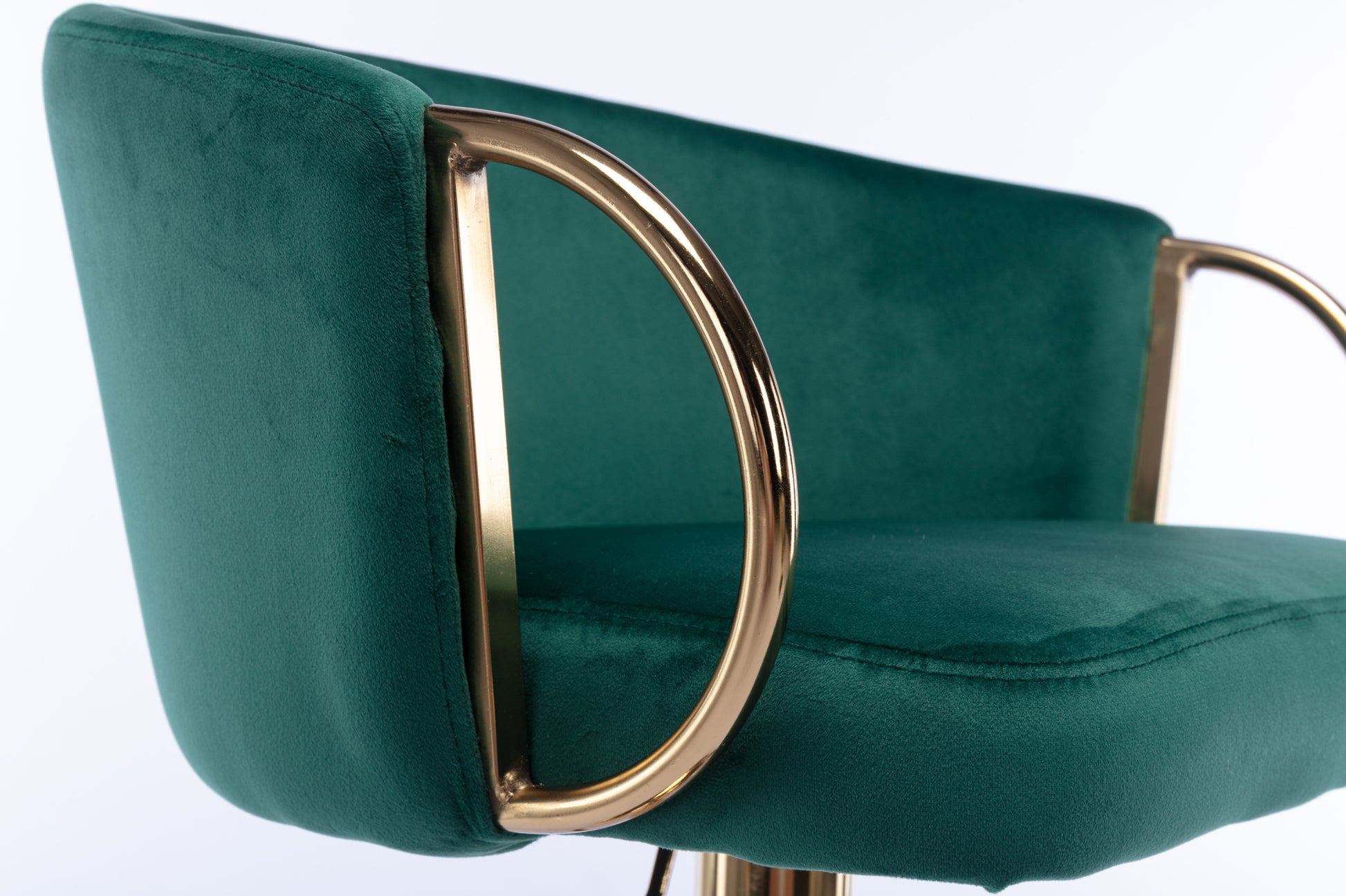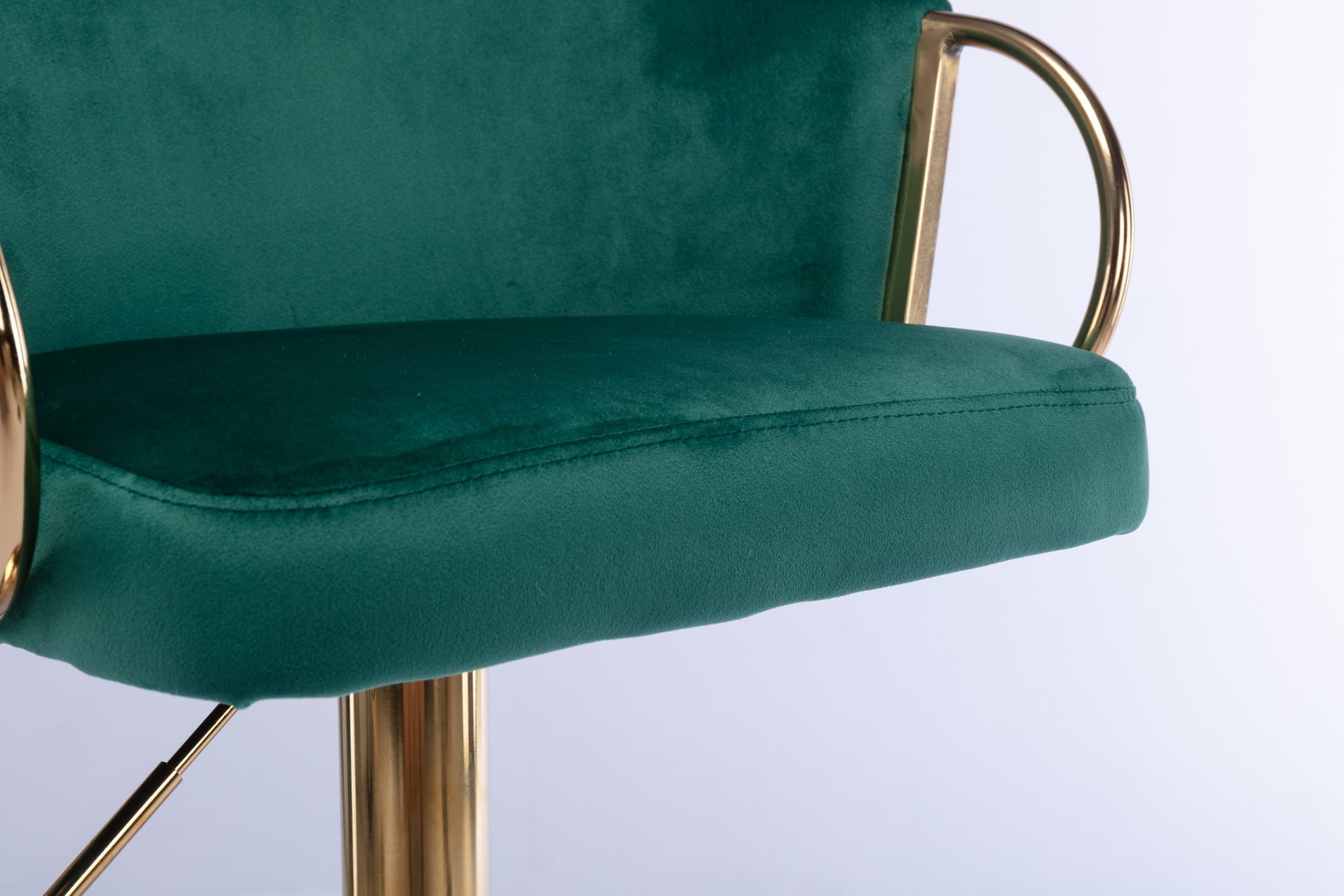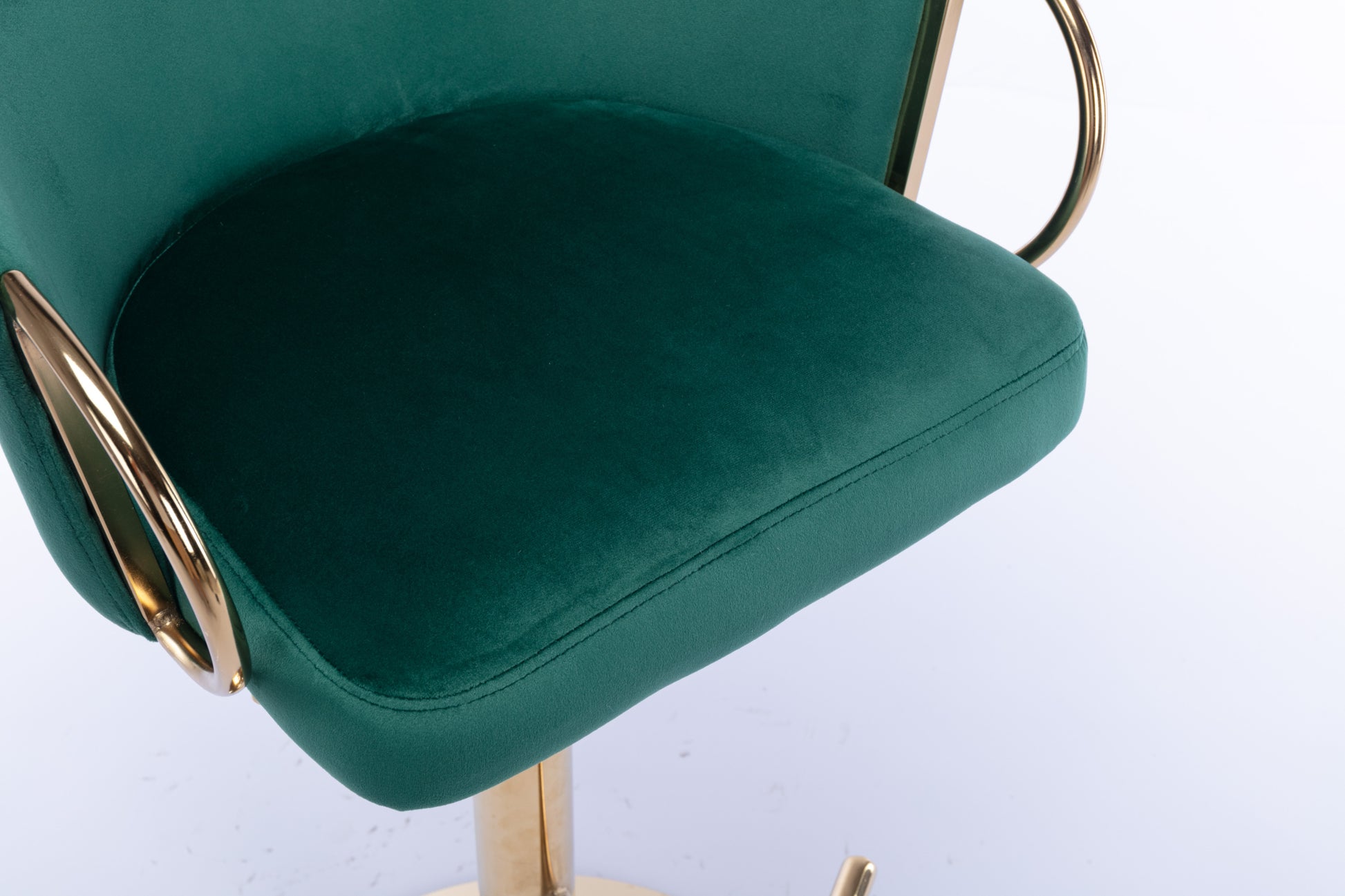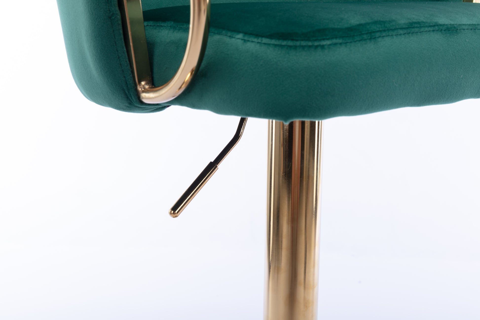 Set of 2 Bar Stools,with Chrome Footrest and Base Swivel Height Adjustable Mechanical Lifting Velvet + Golden Leg Simple Bar Stool-Green