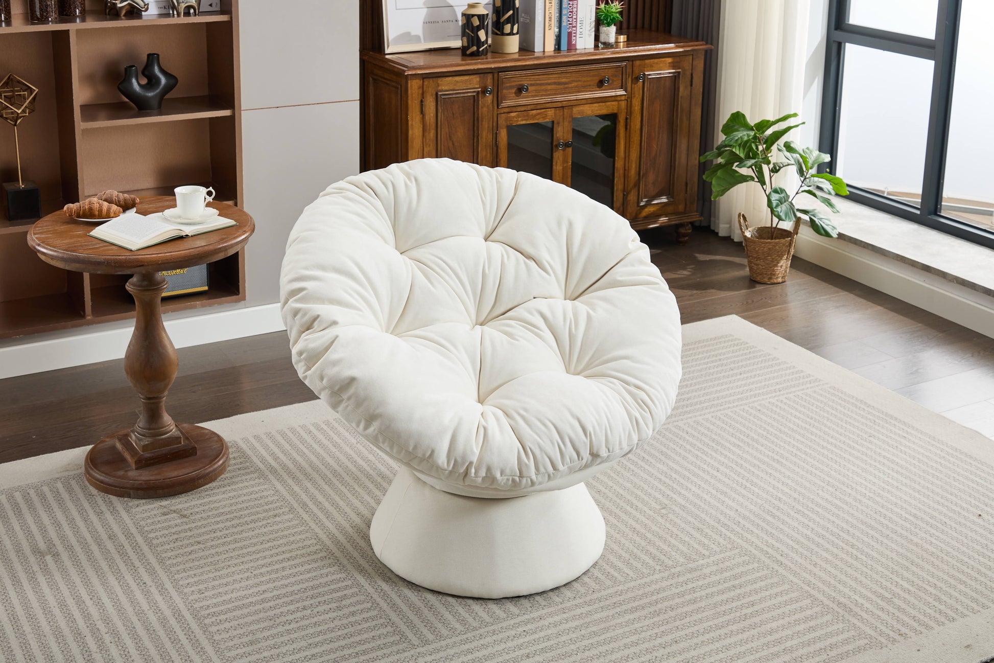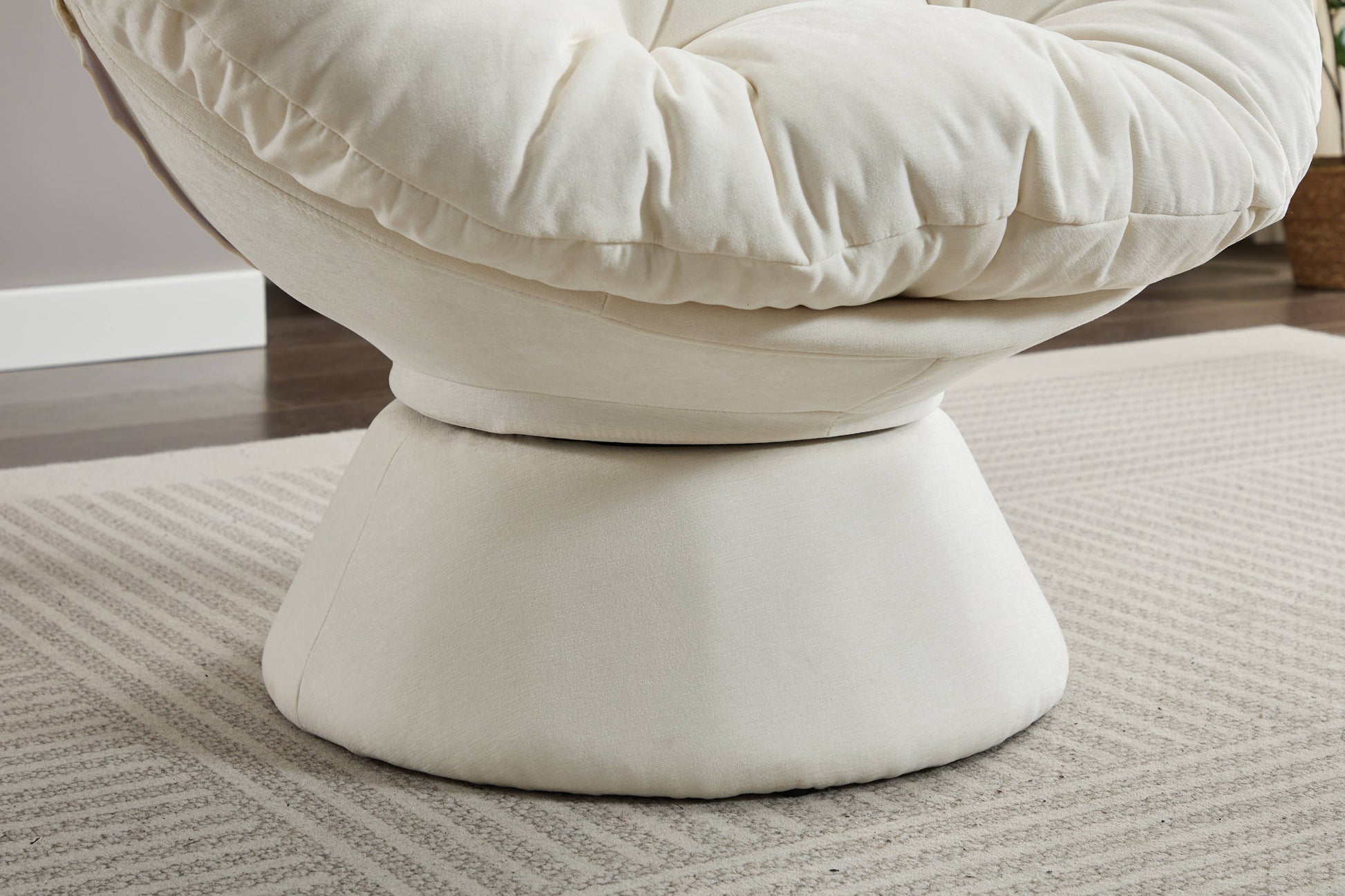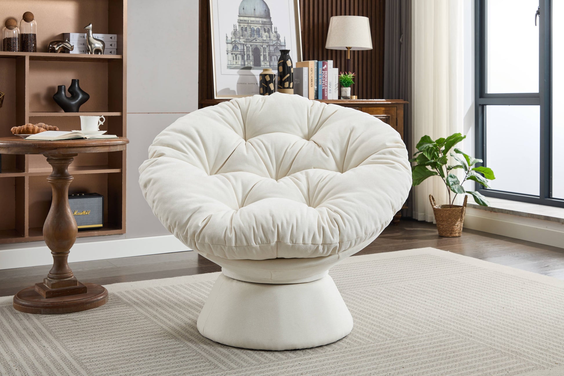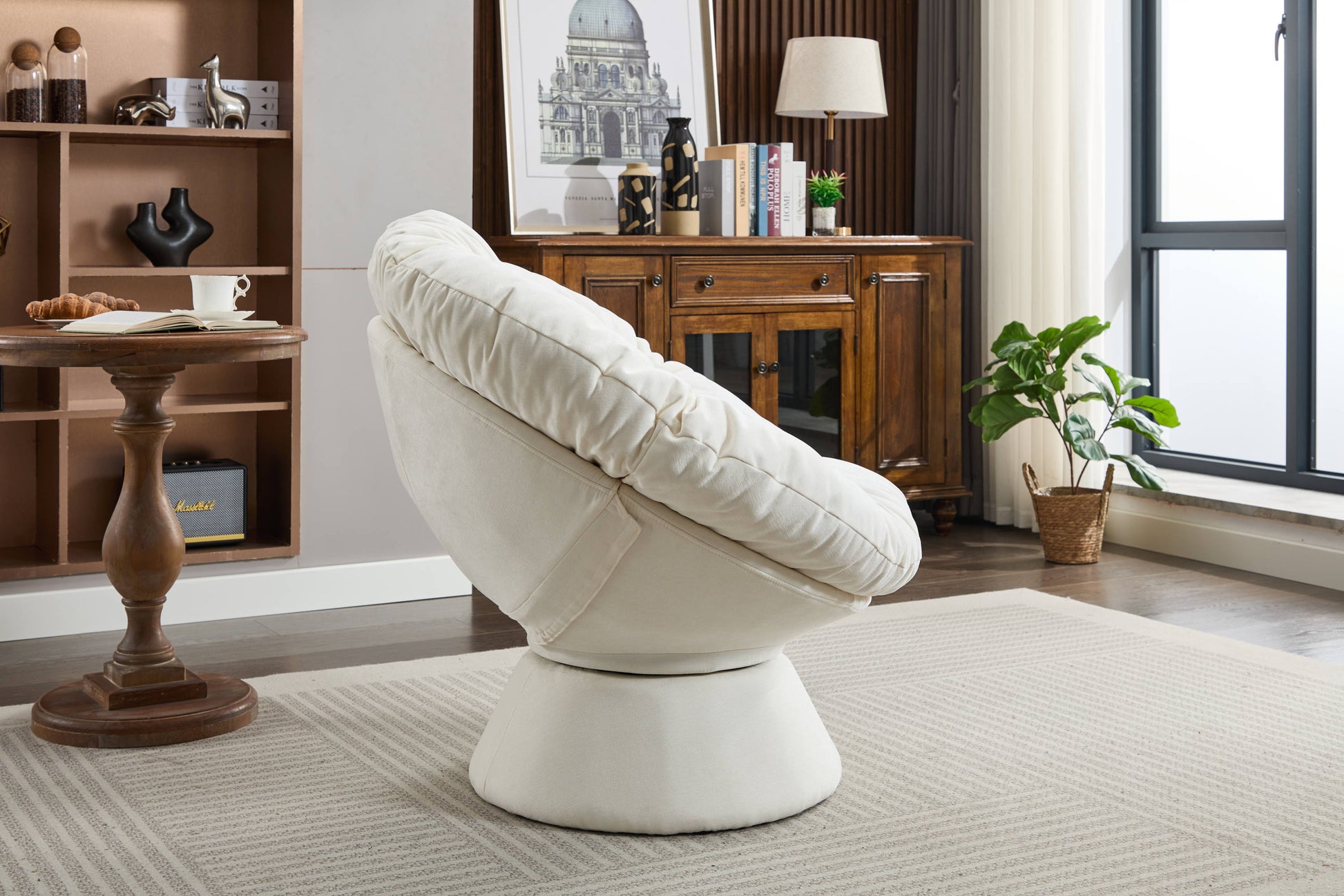Experience the ultimate flexibility with the chair's 360-degree swivel feature, enabling you to effortlessly turn and engage in any direction you desire. The comfortable cushion offers a luxurious seating experience, providing the perfect spot to curl up with a good book or simply relax after a long day.