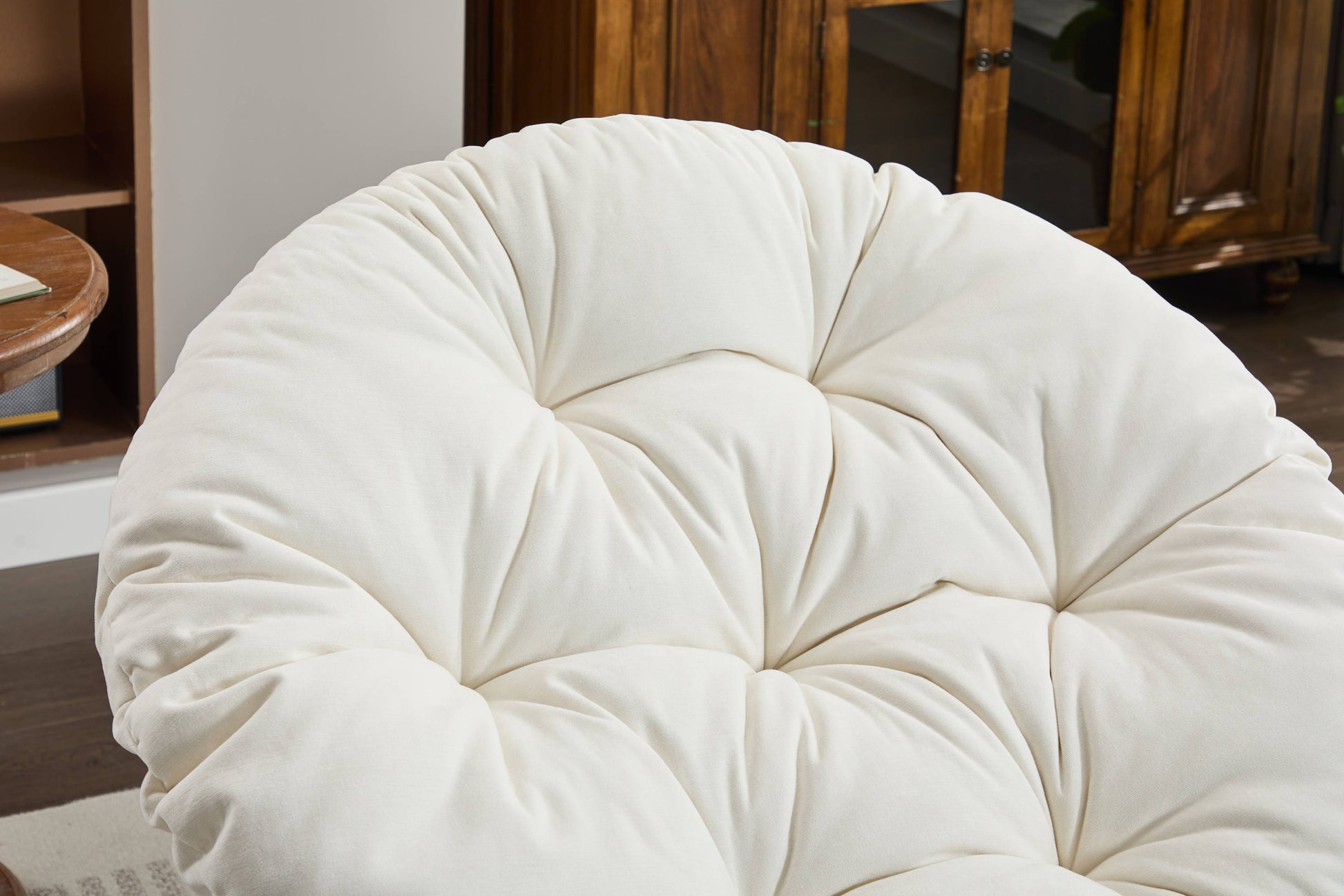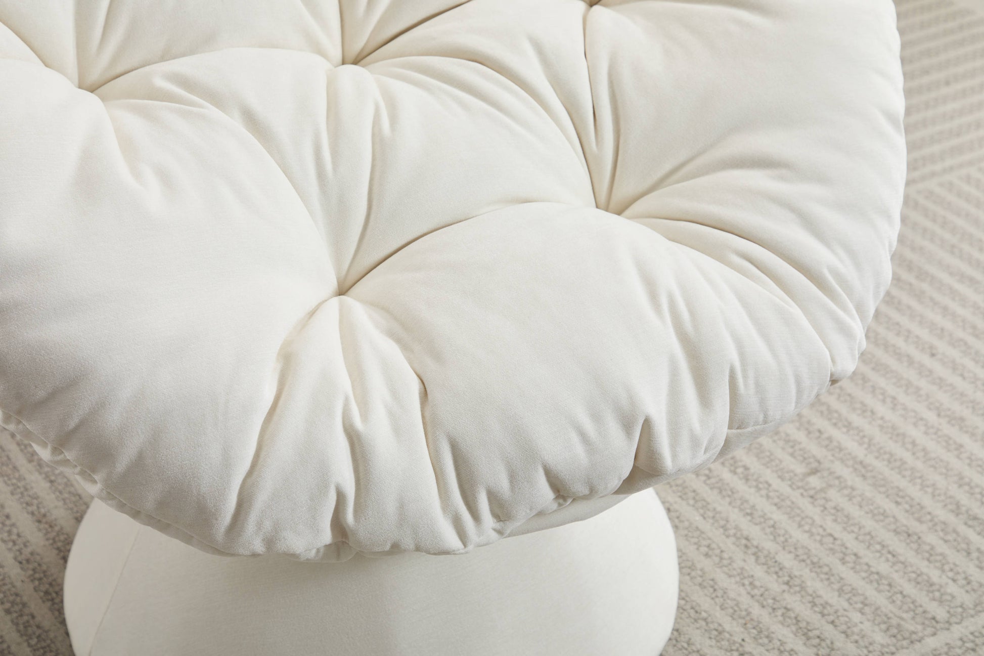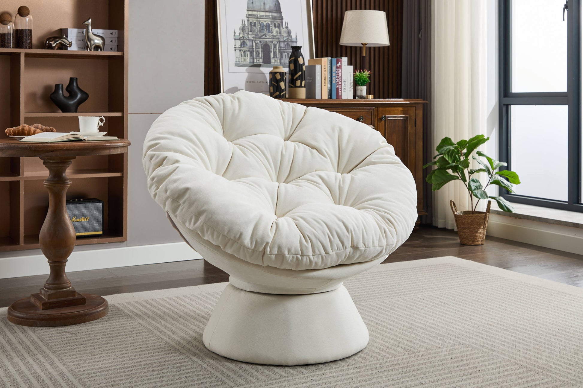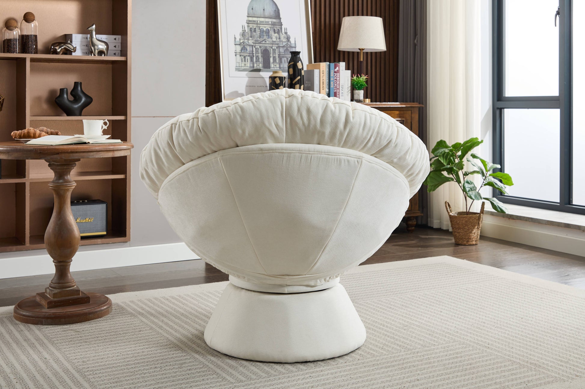 Experience the ultimate flexibility with the chair's 360-degree swivel feature, enabling you to effortlessly turn and engage in any direction you desire. The comfortable cushion offers a luxurious seating experience, providing the perfect spot to curl up with a good book or simply relax after a long day.