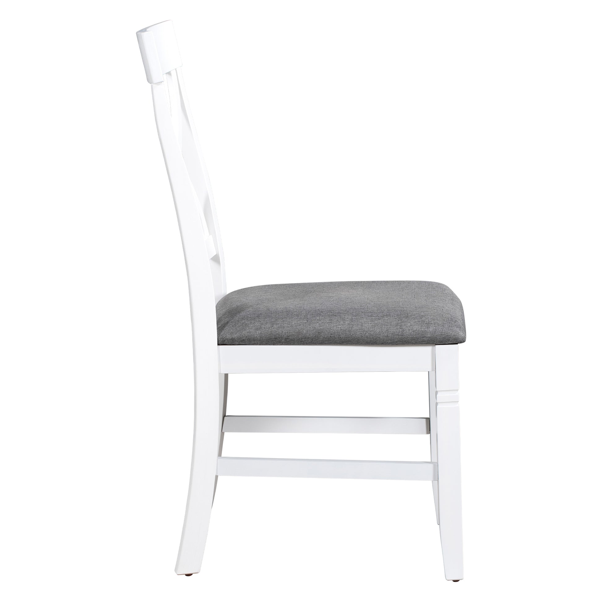 Highlights | Wood Frame // Large Tabletop // Legs with Decoration // Farmhouse Style // Upholstered Chair&Bench // Rubberwood Legs// Set of 4 Chairs |