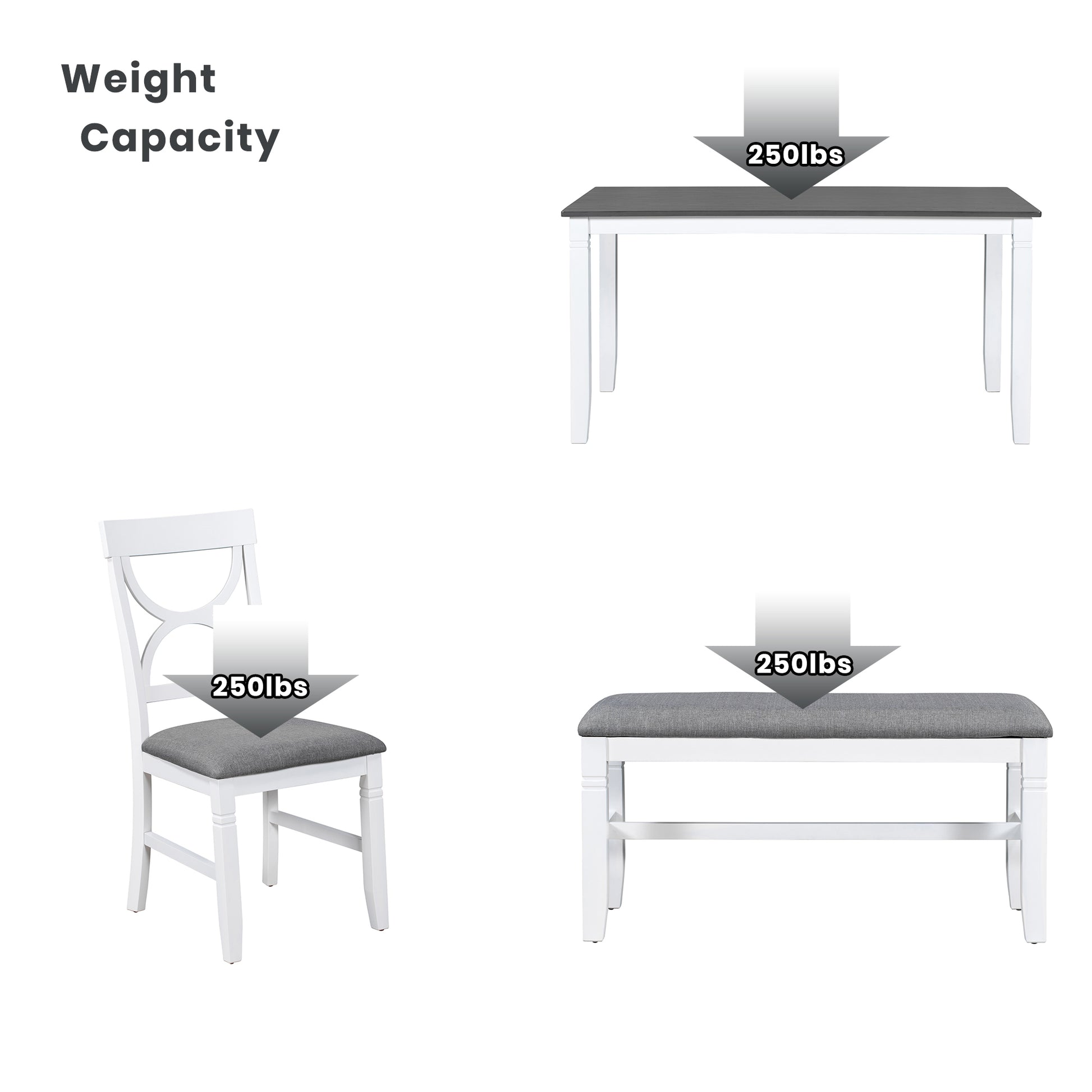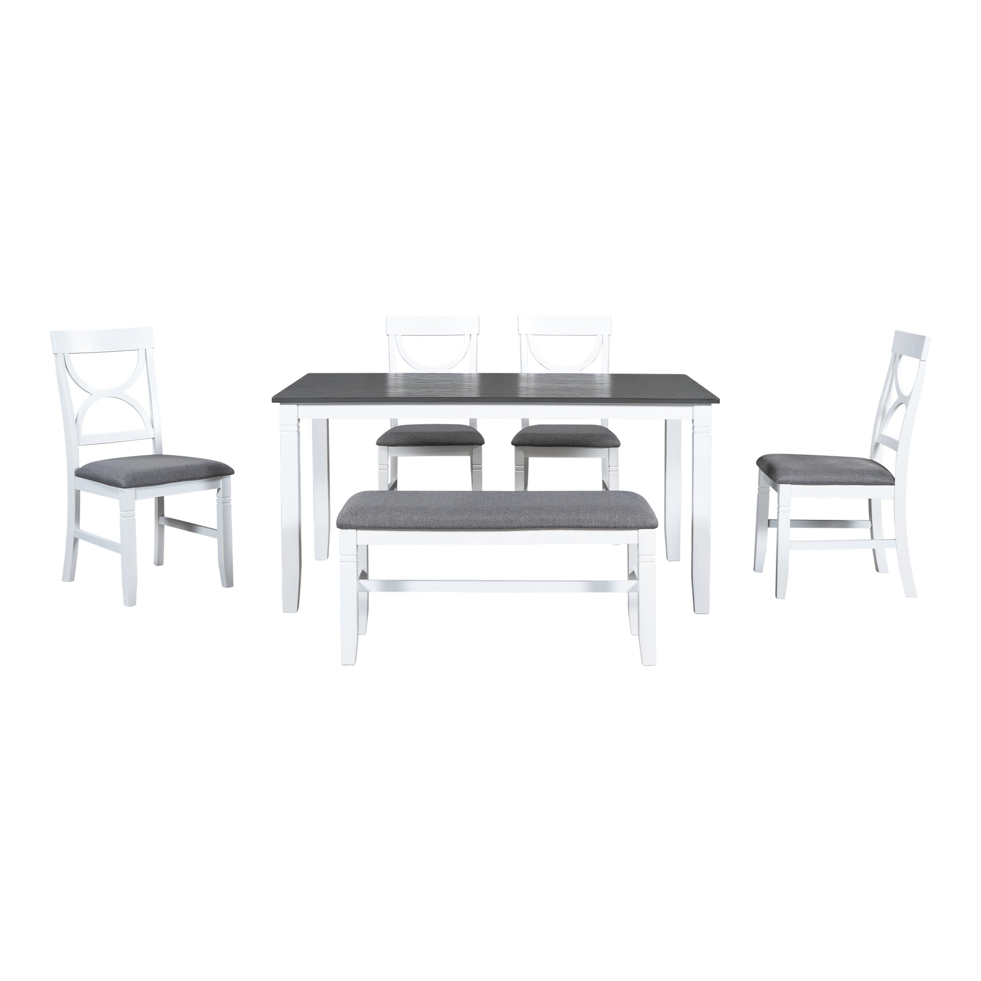 TOPMAX 6-Piece Wood Dining Table Set Kitchen Table Set with Upholstered Bench and 4 Dining Chairs, Farmhouse Style,Gray+White