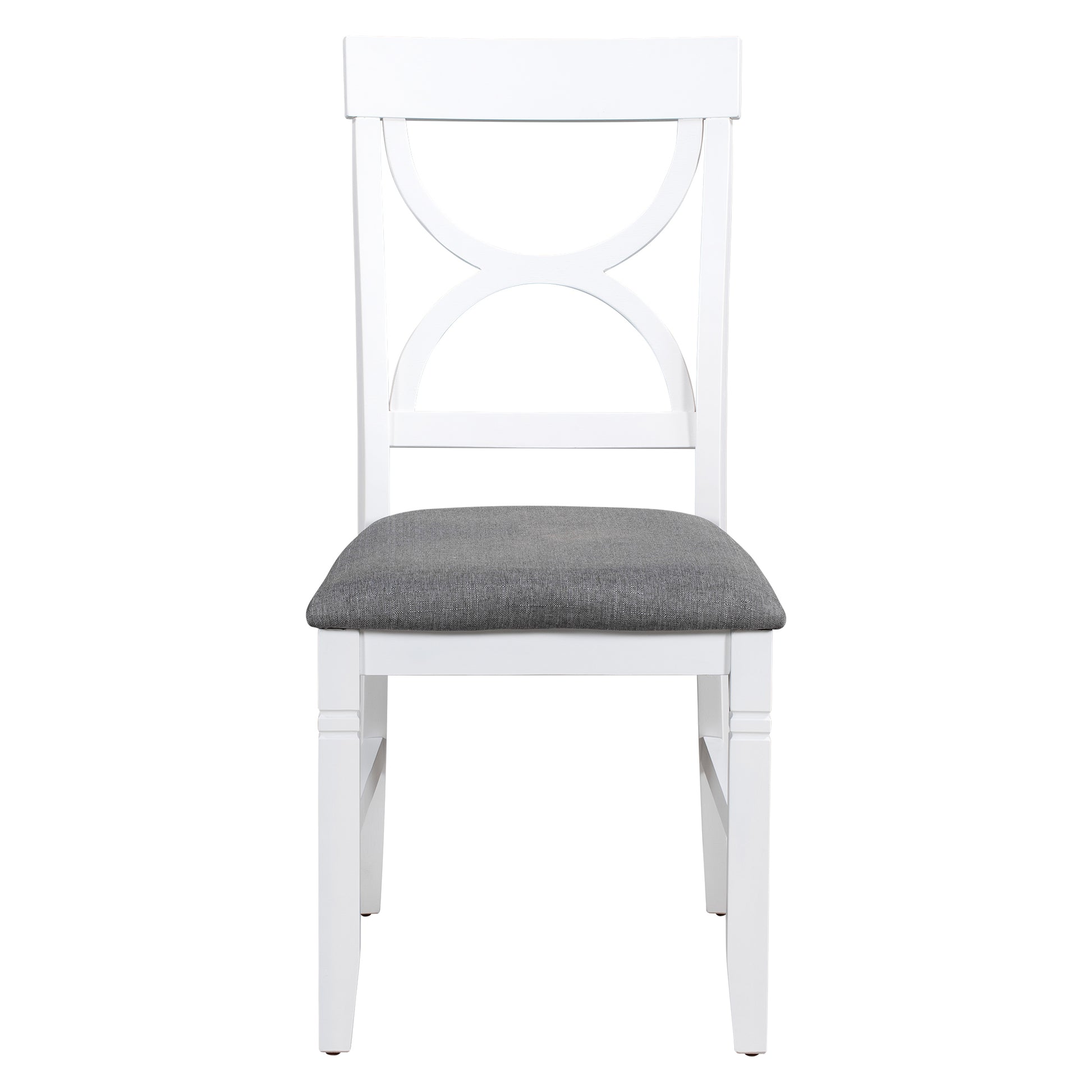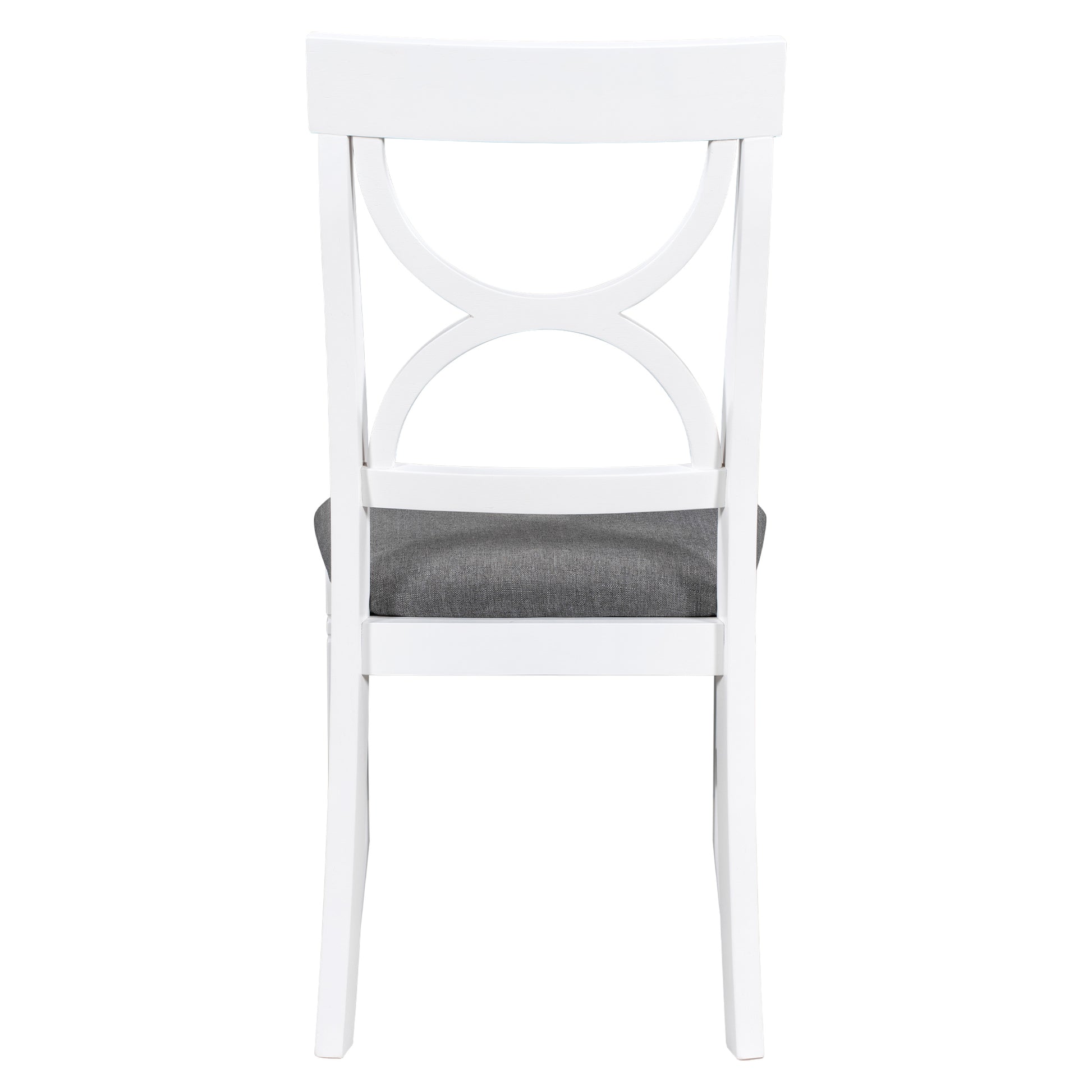 This dining table set is sure to wow your guests with the level of your taste. The rustic dining table features a classical gray tabletop and white frame. It also looks stunning and attractive dining set with all of engraved legs and circle backs.